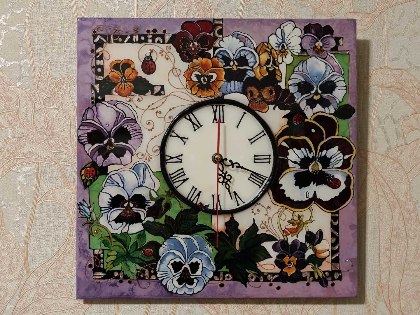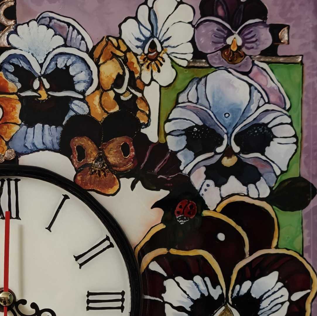 Часы настенные, витражные краски, акриловые контуры, эпоксидная смола