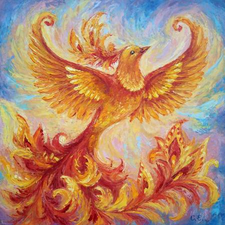 Детализированная проработка перьев, орнаментов и фона подчёркивает мастерство исполнения и создаёт ощущение глубины и объёма.