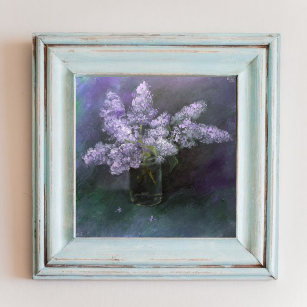 Картина маслом "Букет сирени" написана на холсте на картоне. Размер 30/30 см. Это уникальный экземпляр, ручная работа. Написано с натуры.