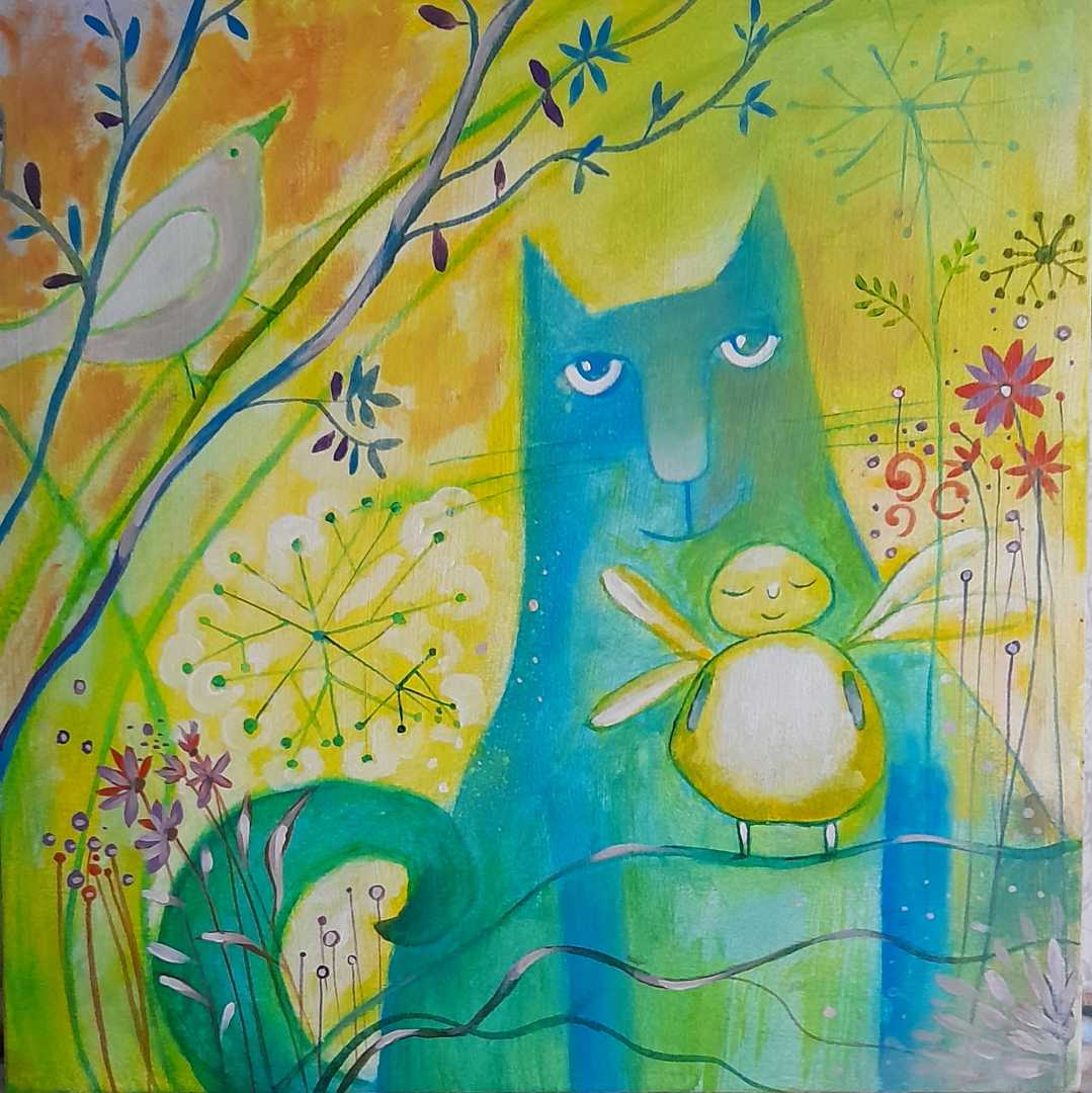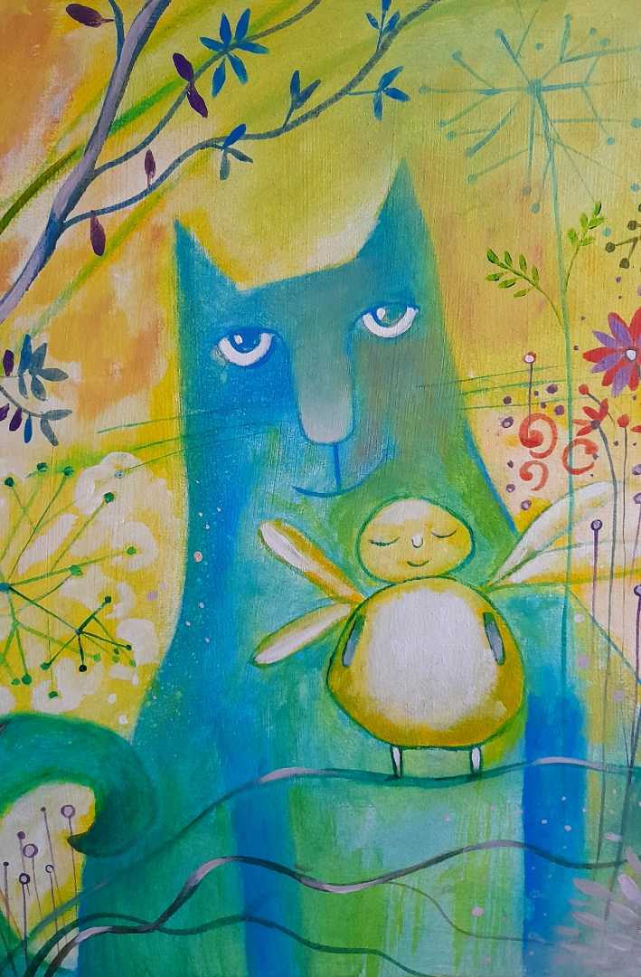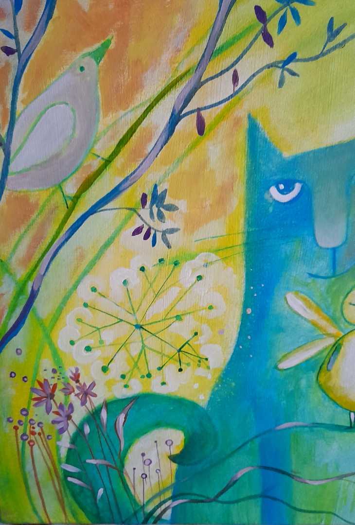 50х50 см. акрил на планшете (дерево, фанера). Наивный стиль .Подойдет для детской или по цветовому сочетанию к интерьеру.