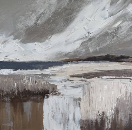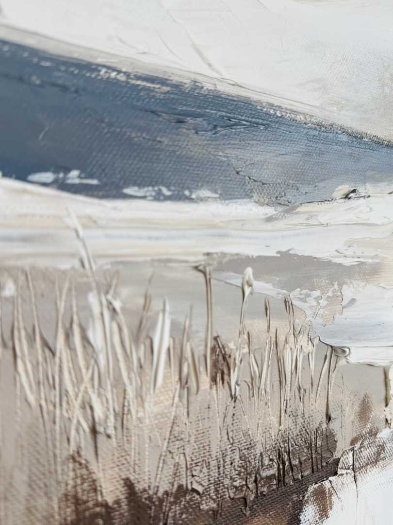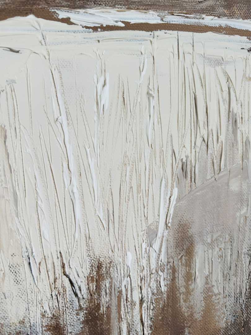 ой за слоем, благодаря чему картина выглядит живой и меняется в зависимости от освещения. Спокойная природная палитра - песочные, молочные и дымчатые тона создаёт атмосферу тишины и созерцания.