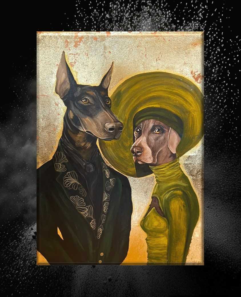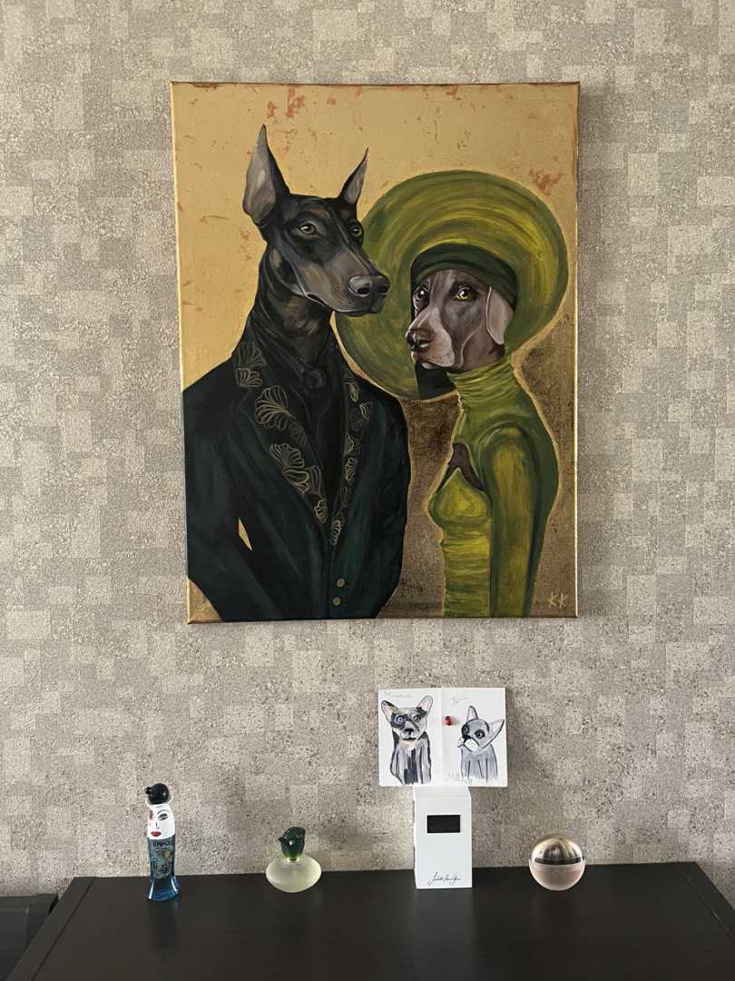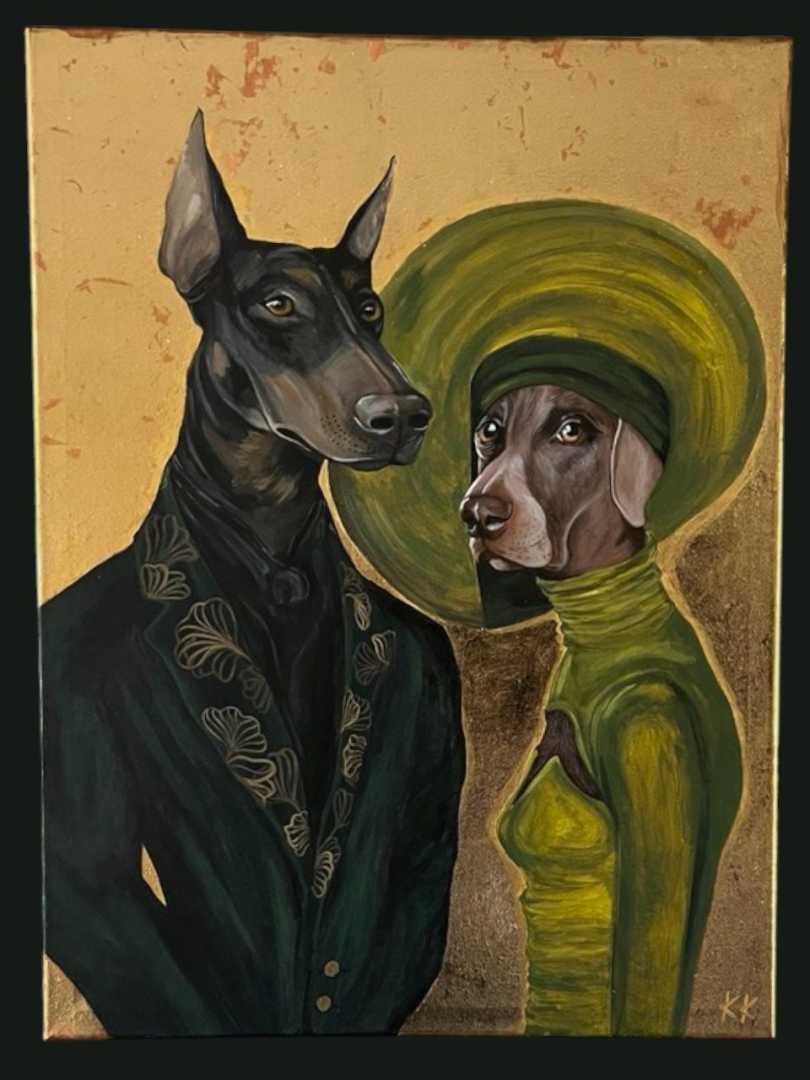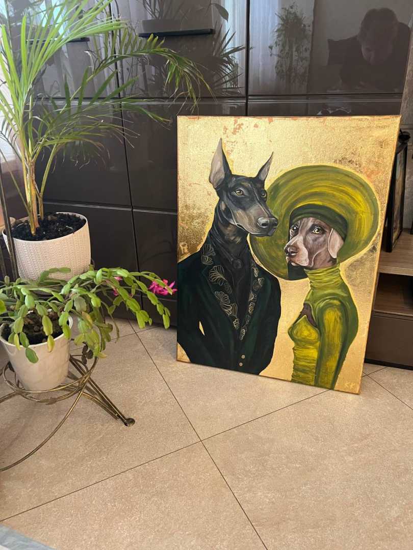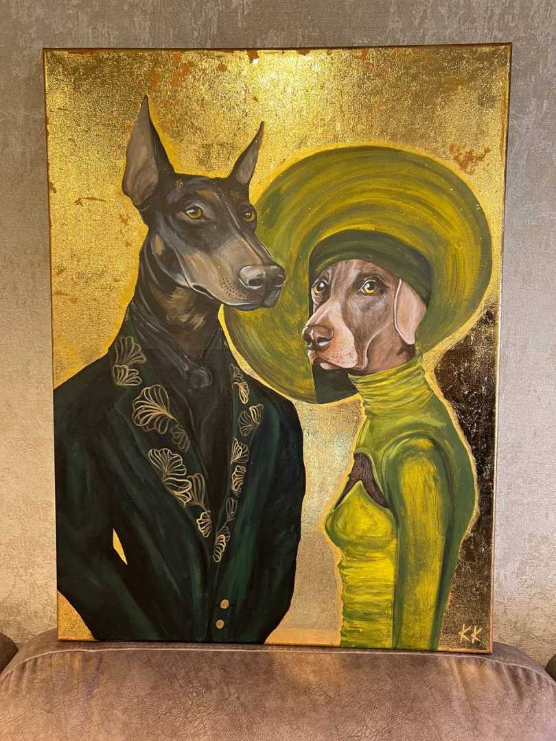 Картина "Собаки-аристократы "Размер 60х80 см, написана акриловыми красками на натуральном холсте на подрамнике.
