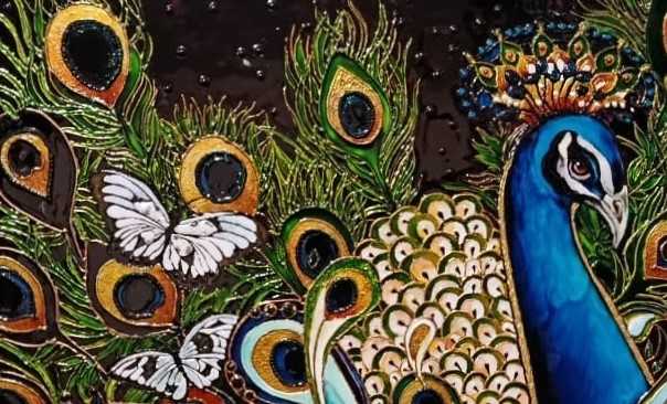 Картина витражная «Павлин» на стекле (по работе Д.Галчутта)