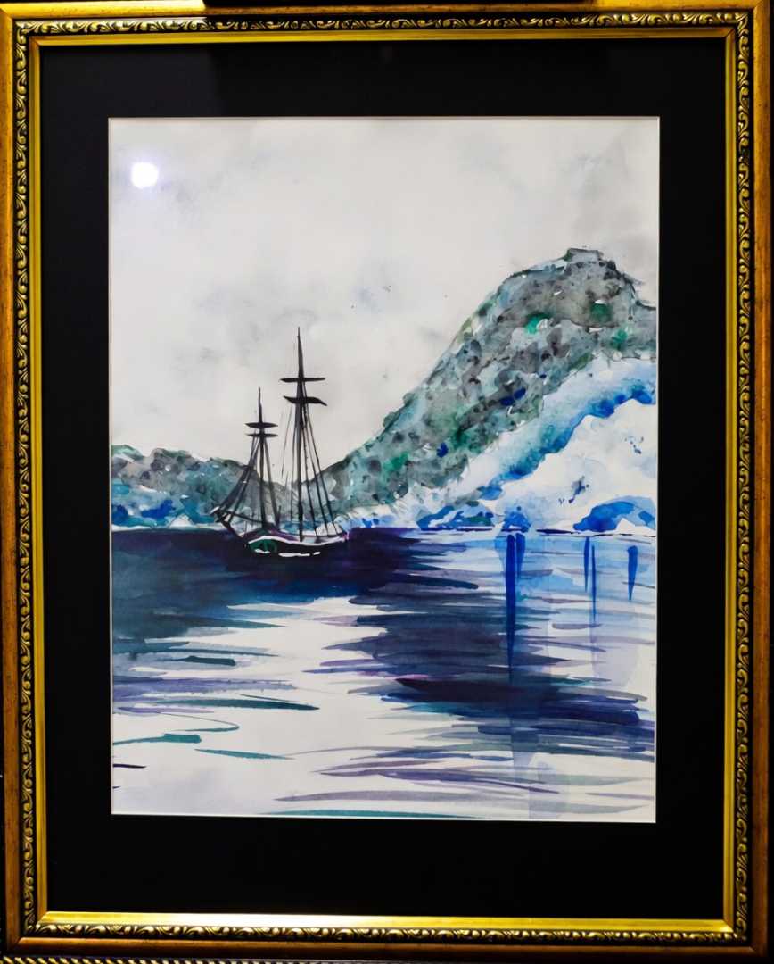 зумрудные оттенки горного берега передают прохладу и свежесть южного вечера, а темные силуэты корабля создают ощущение тишины и покоя. Вода здесь становится зеркалом, в котором отражается не только небо, но и сама суть путешествия - мечты, ожидания, движения. Техника акварели позволила передать легкость и прозрачность воздуха, игру света и теней, создав эффект растворения форм в пространстве. Этот пейзаж наполнен ощущением свободы и бесконечности морских просторов.