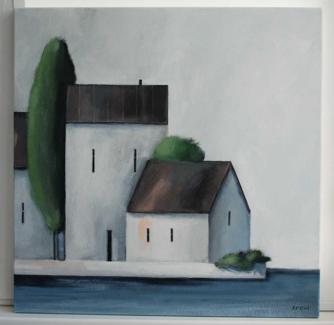 Картина с домиками, 60х60, акрил, холст на подрамнике