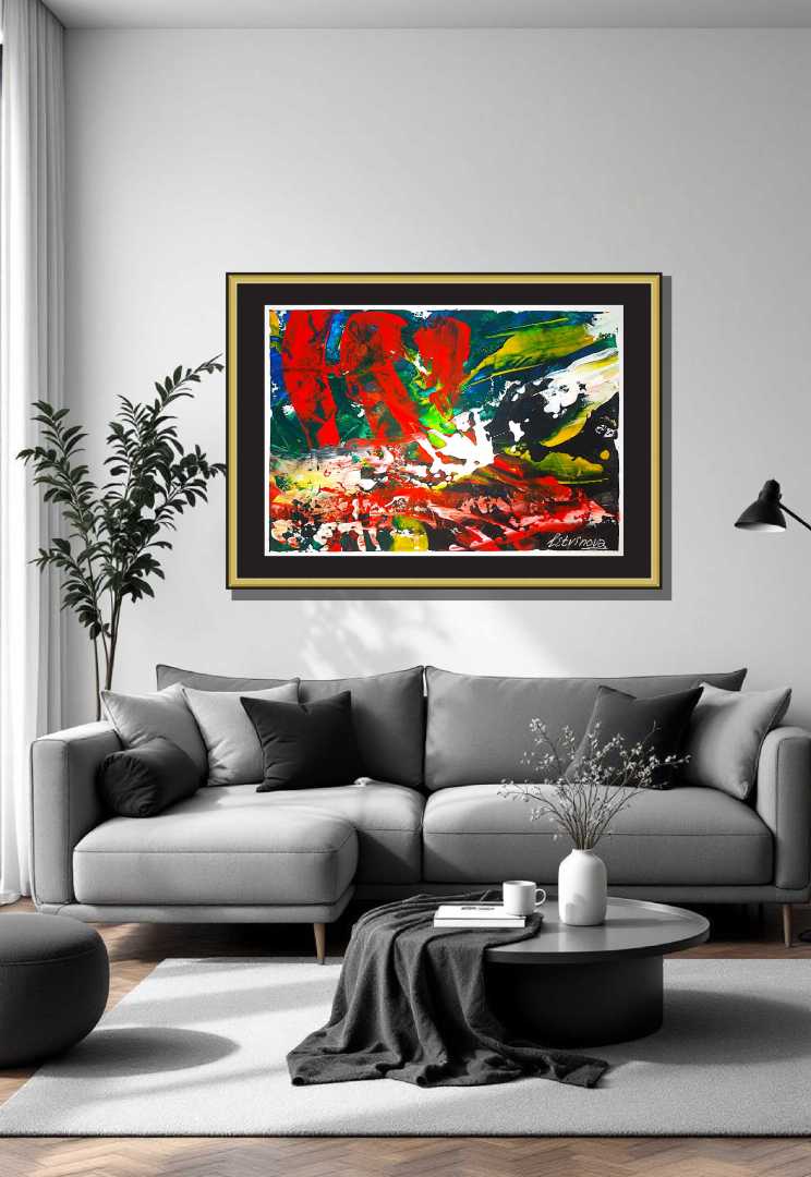 Эта работа-эмоциональное высказывание в жанре абстрактной живописи. Мощный визуальный контраст, где широкая, динамичная полоса светлого тона уверенно пробивается сквозь сложную, многослойную глубину тёмного фона.