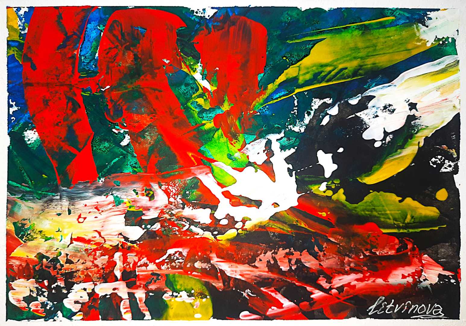 Фон насыщен оттенками и сложными переходами цвета, что говорит о глубине и многогранности внутреннего или внешнего мира, сквозь который пробивается этот «свет». Эта картина-метафора борьбы и победы, напряжения и облегчения, тьмы и надежды.