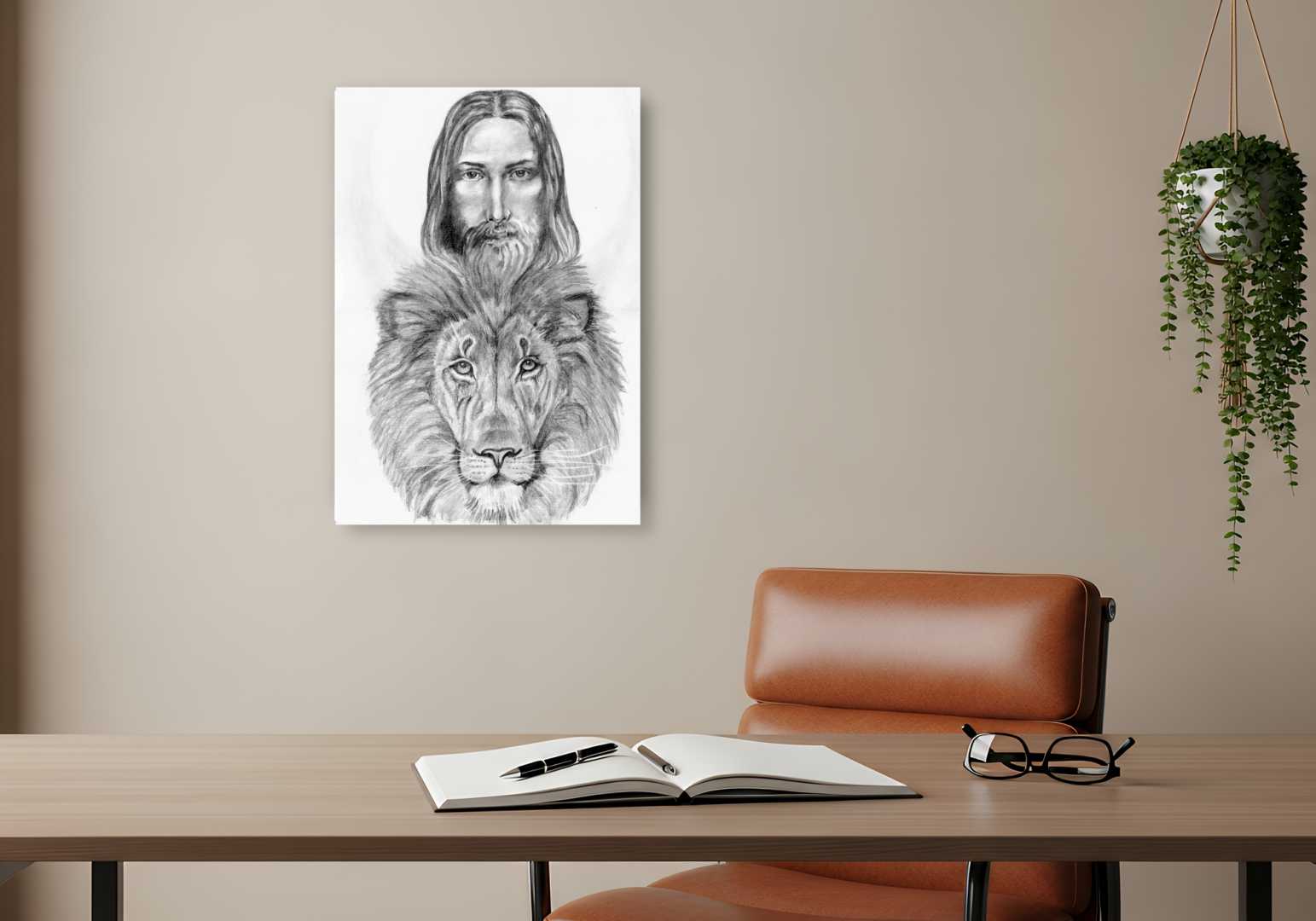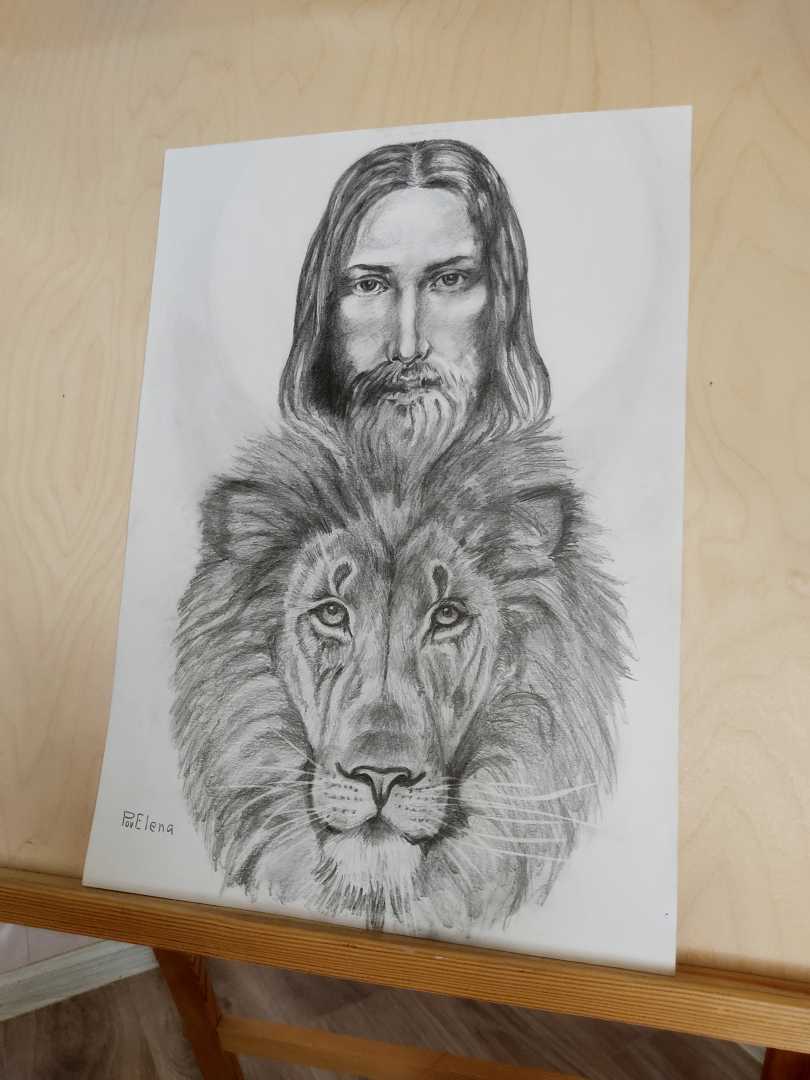 Они почти одинаковые. Сверху — спокойный, все понимающий взгляд Христа. Снизу — свирепый, немигающий взор льва. И в какой-то момент это перестает быть двумя разными портретами. Это становится одной мыслью о силе и смирении.