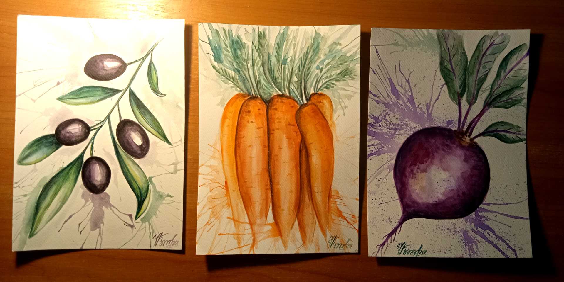 Рисунки нарисованы на гернистрц , плотной хлопковой акварельной бумаге. Формат А5. Акрил в аквакварельной технике. Набор 4 штуки. Без рам.