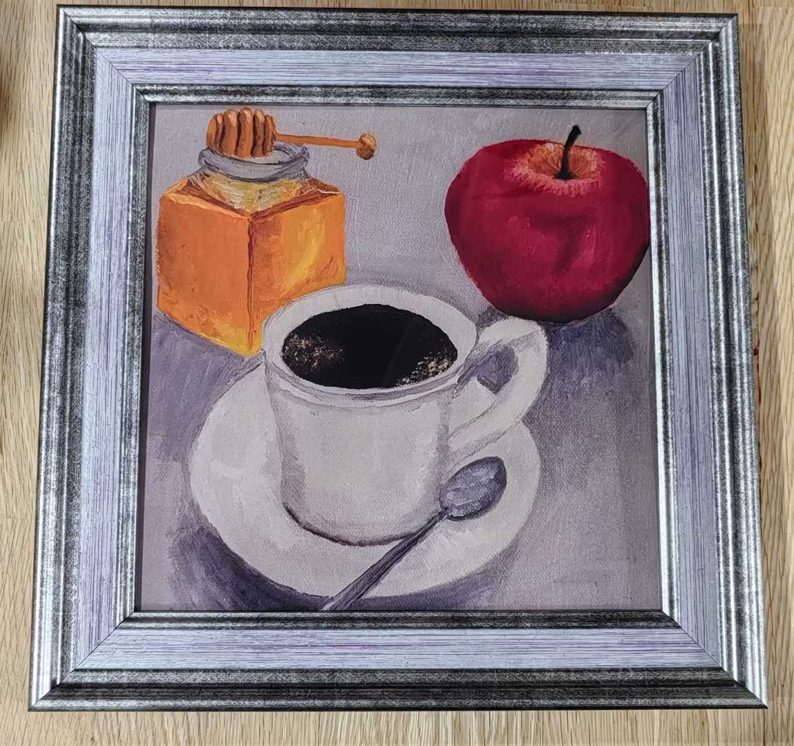 Постер в раме "Приятный завтрак" репродукция с картины художницы Жгельской Анастасии. Используется специальная матовая бумага, высококачественная печать. Рама багетная, Российского производства. Размер в раме 25х25см. без неё -19х19см.