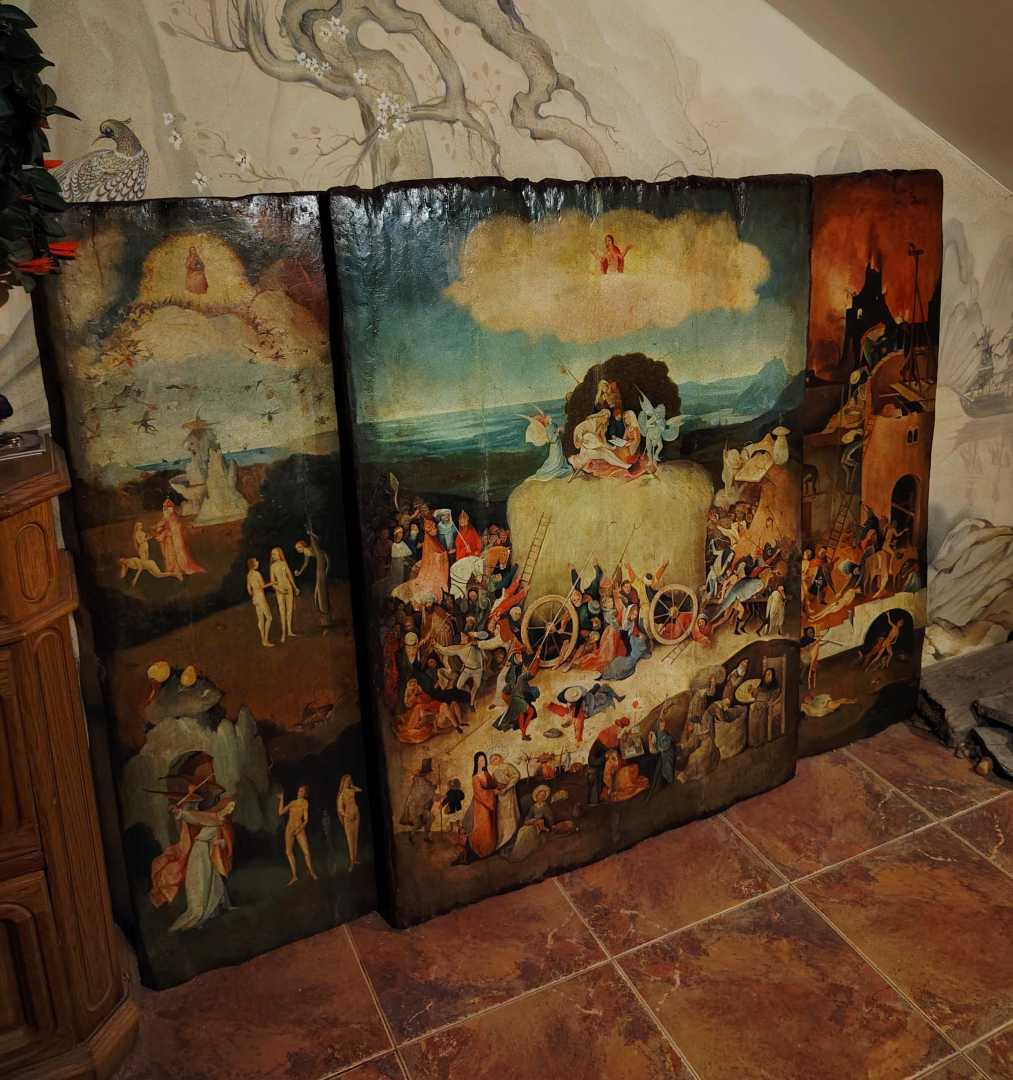 Копия работы Босха. Триптих, старое дерево, масло, кракелюрный слой.