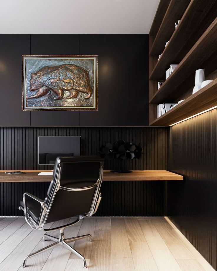 Чеканка . "Мишка , Север и олени" .Из серии "Север"...существует 5 разных работ серии с разными добавлениями волк , олени, оленевод , песцы,