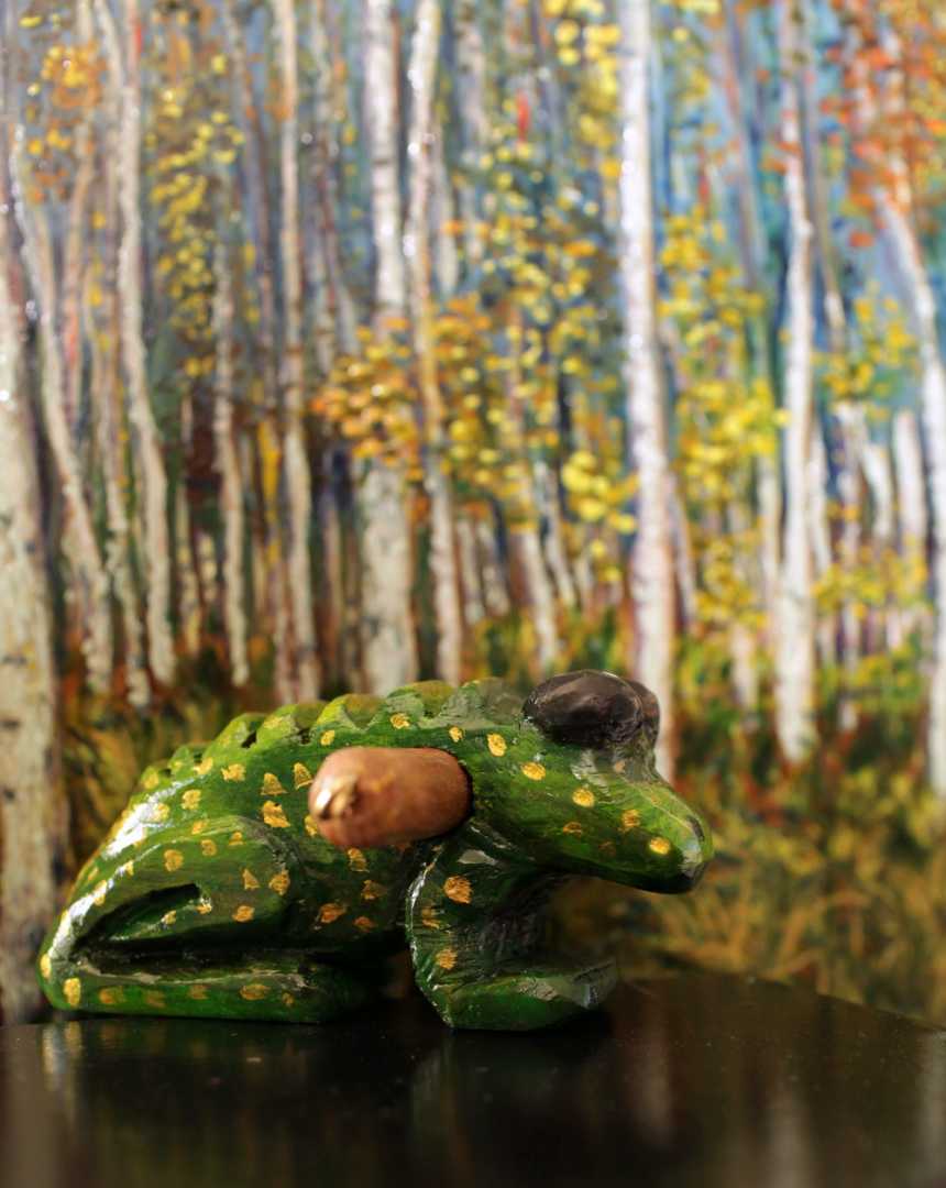 Деревянная резная трещотка. Работа по мотивам старых деревянных игрушек и волшебной русской сказки "Царевна лягушка". Автор Ивашутин Сергей март 2026 г.