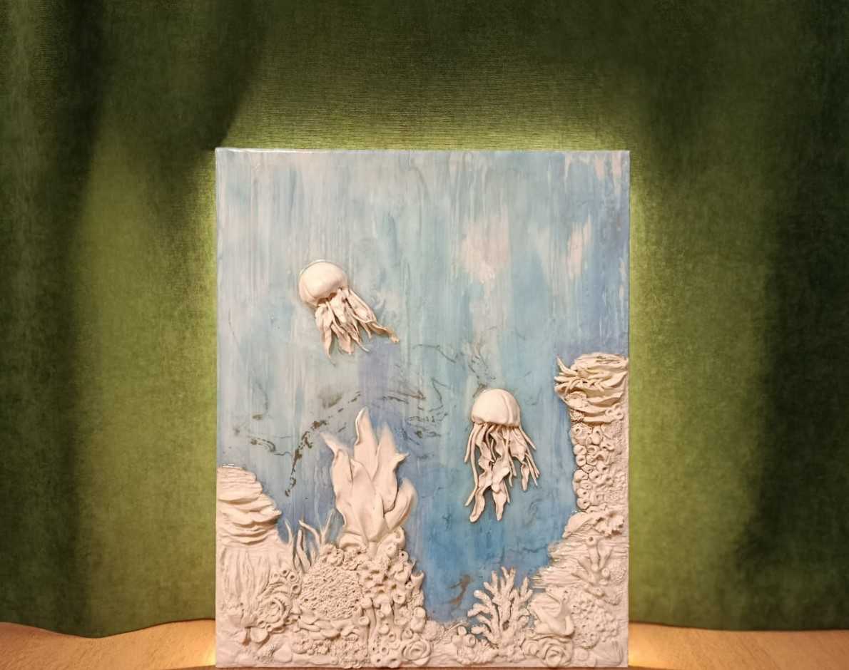 Артборд на подрамнике с подсветкой, глина, эпоксидная смола