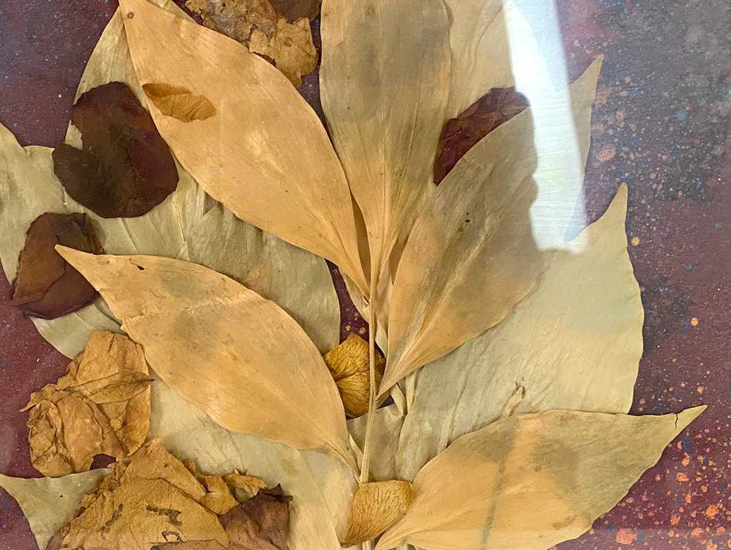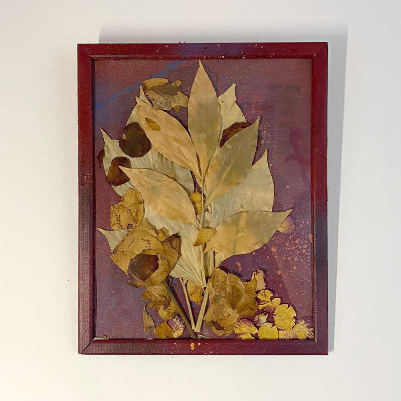 Работа из серии Честершир, гербарий бордовый – смешанная техника, растения, акриловый маркер,