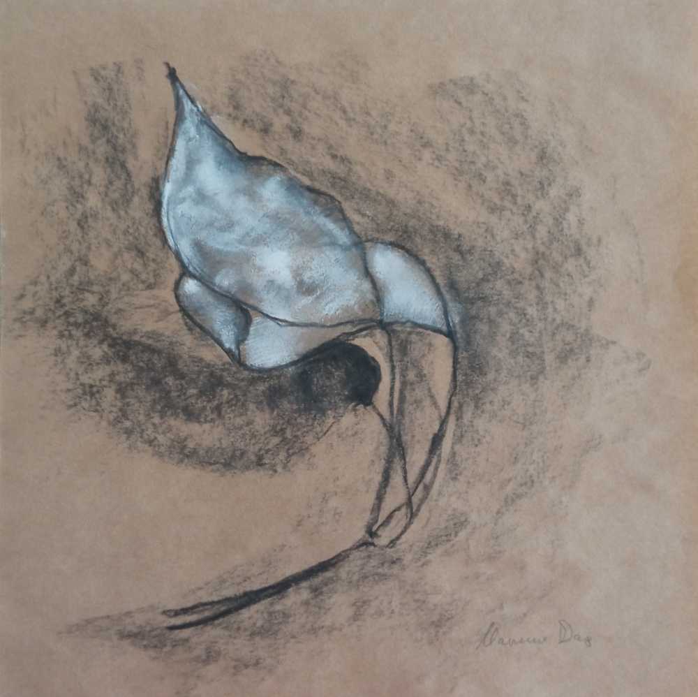 Изящная художественная работа «Лунный цветок» выполнена в мягкой графической технике. Лаконичная композиция передает хрупкость растения и тонкую игру света и тени.
