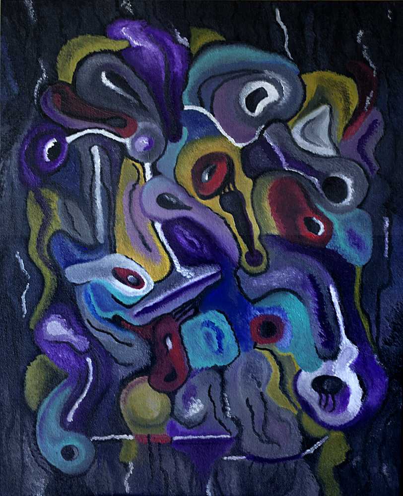 Изначально задумывались простые обтекаемые формы во взаимосвязи друг с другом. В процессе, как-то само по себе, их количество стало больше, они как-будто стали перетекать друг в друга. Вот так и получилась "Текучесть".