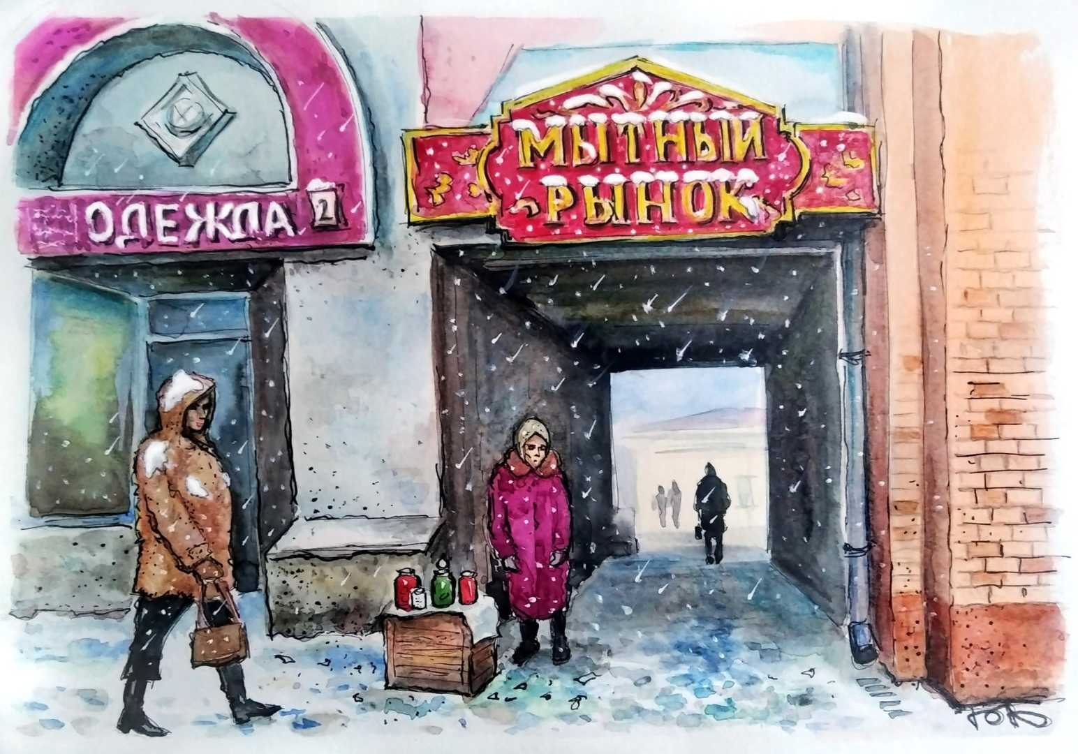 Тушь, перо, Акварель. А4