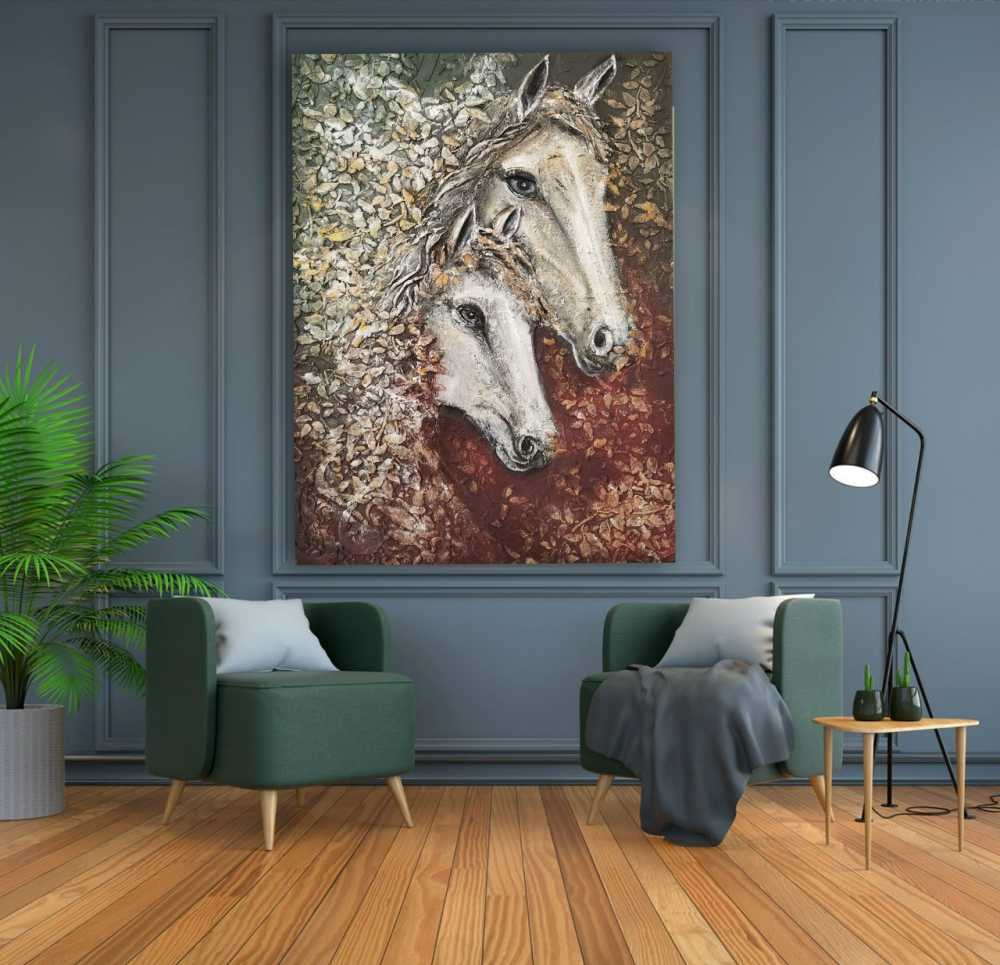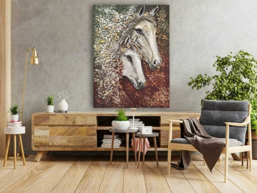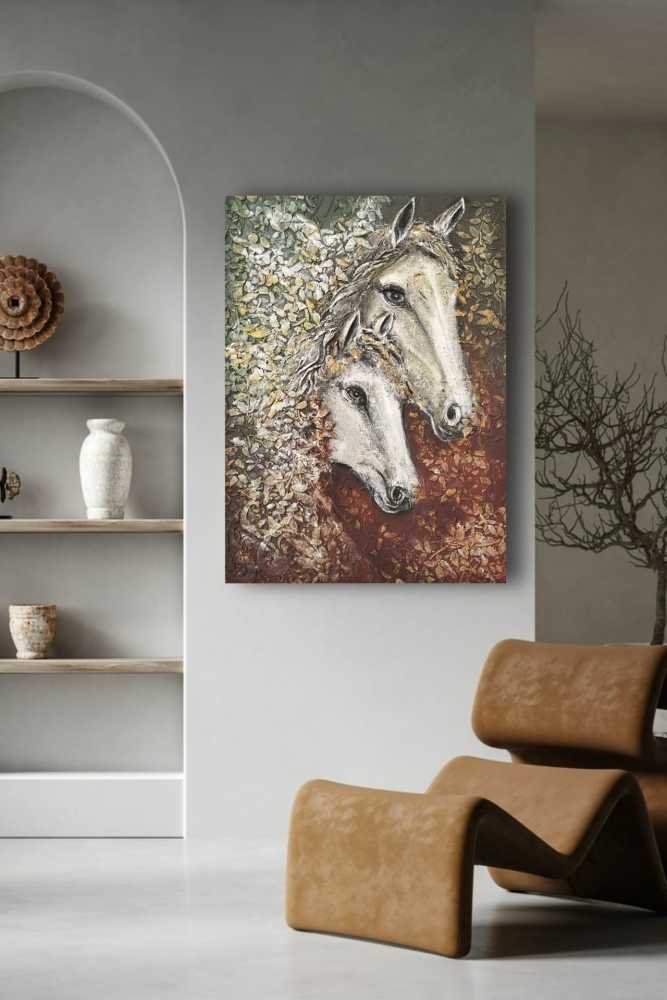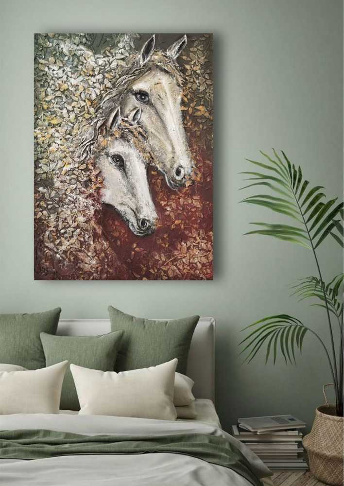 Холст 60*80, текстурная паста, акрил. Картина с лошадьми является символом красоты и грации, свободы и целеустремлённости Идеально подойдет для подарка.