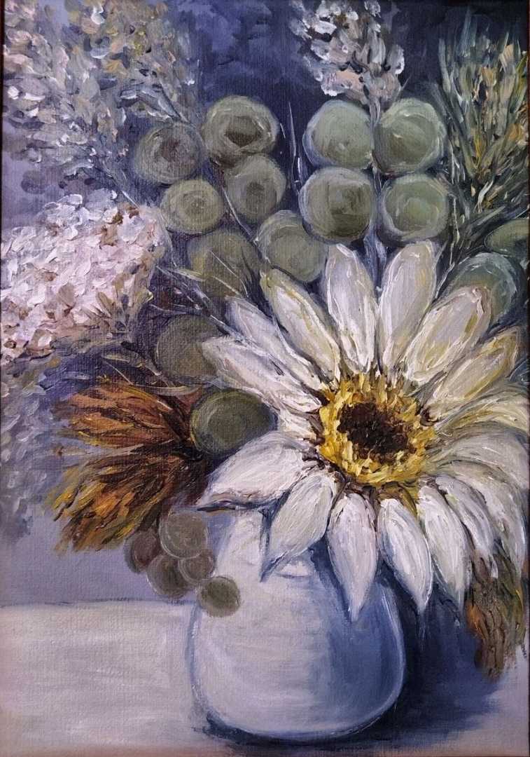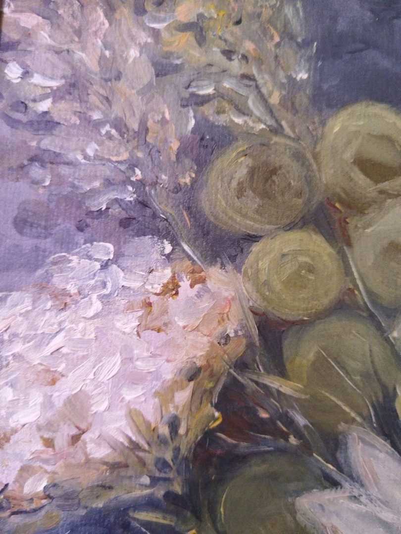 Букет, масляные краски, сочные сочетания, объемные детали.