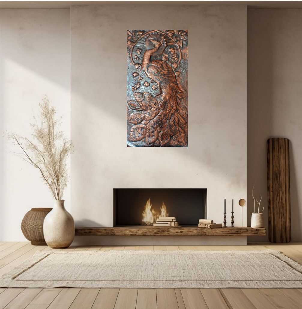 Жар Птица . Медь. Чеканка . 110х60. Багет. Иркутск 2025 г.