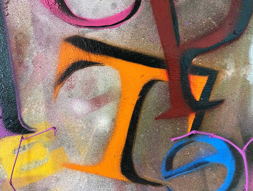 бетон, мелованная краска, граффити.