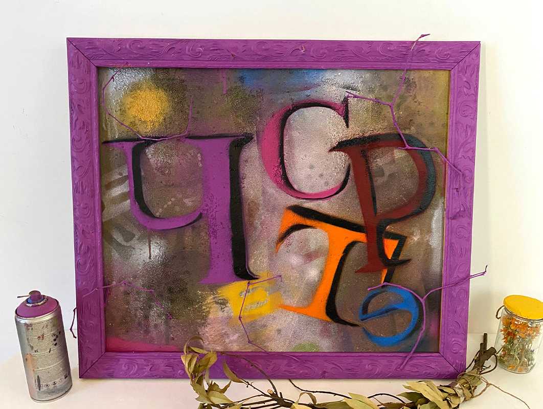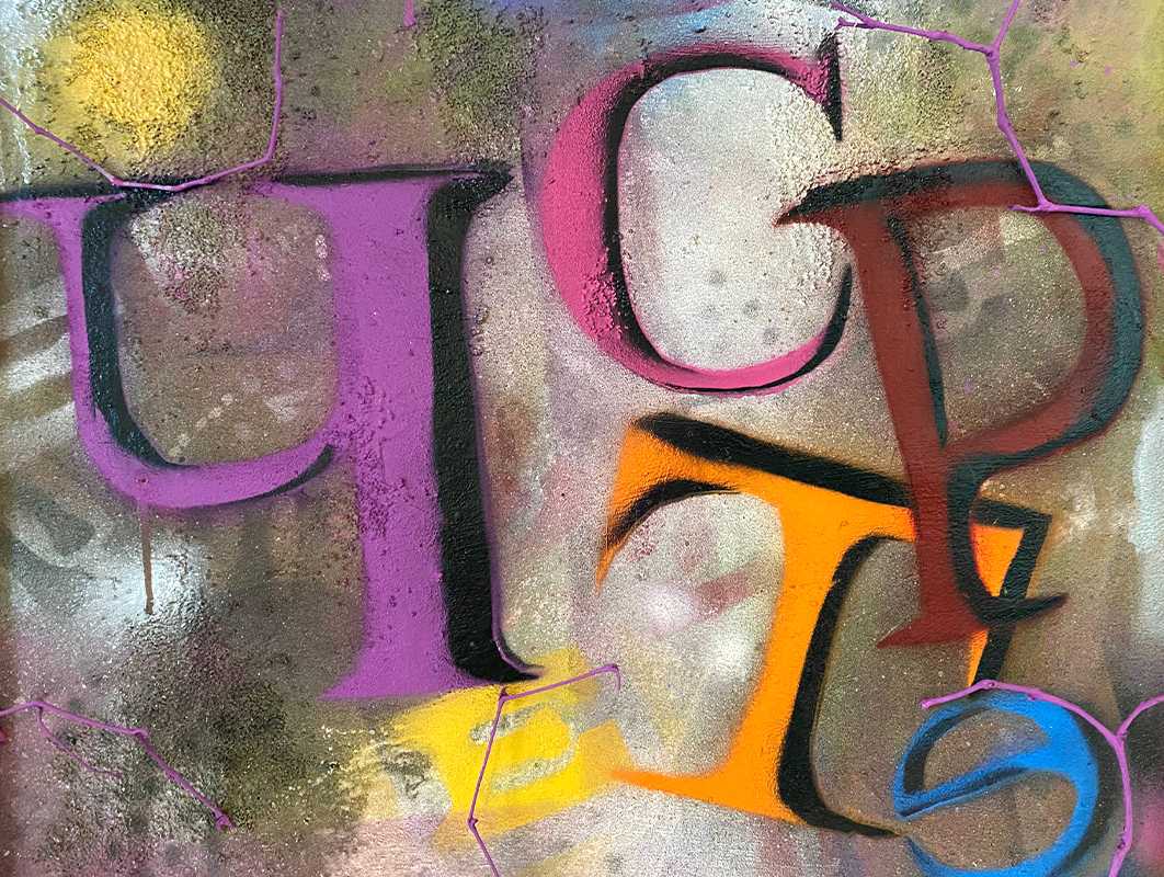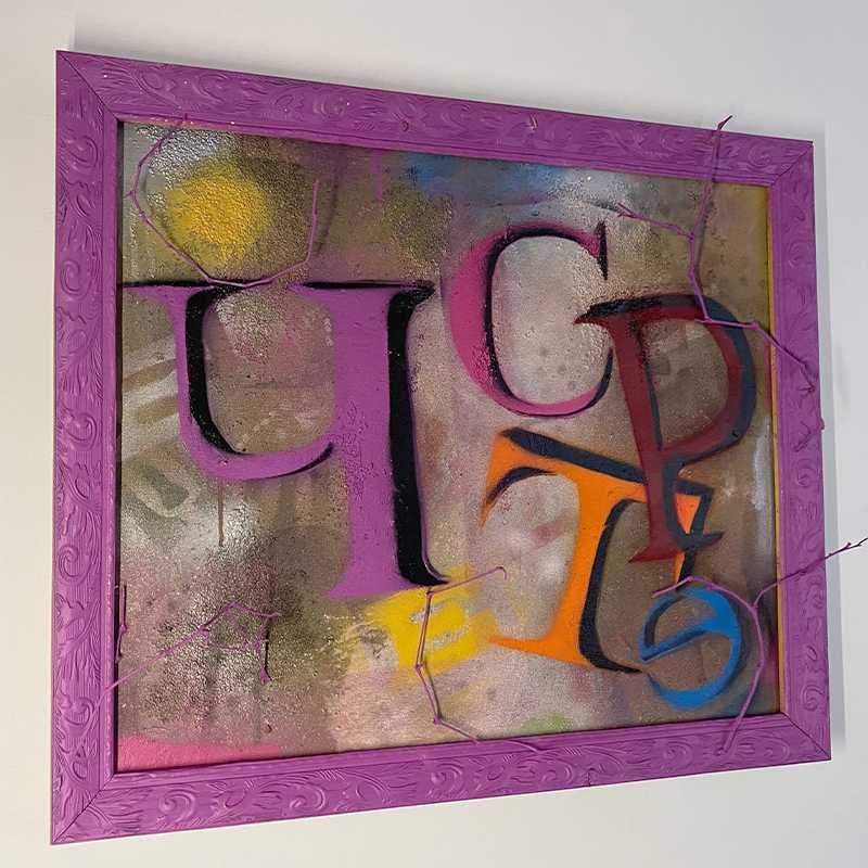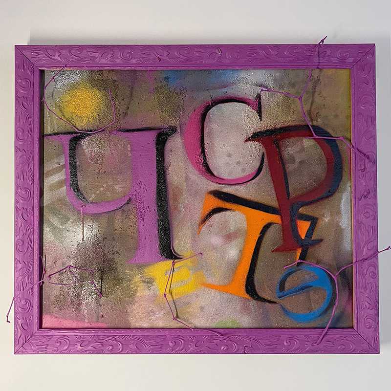Честер (2024 г.) работа из серии Честершир – однословные стихи; смешанная техника, холст,