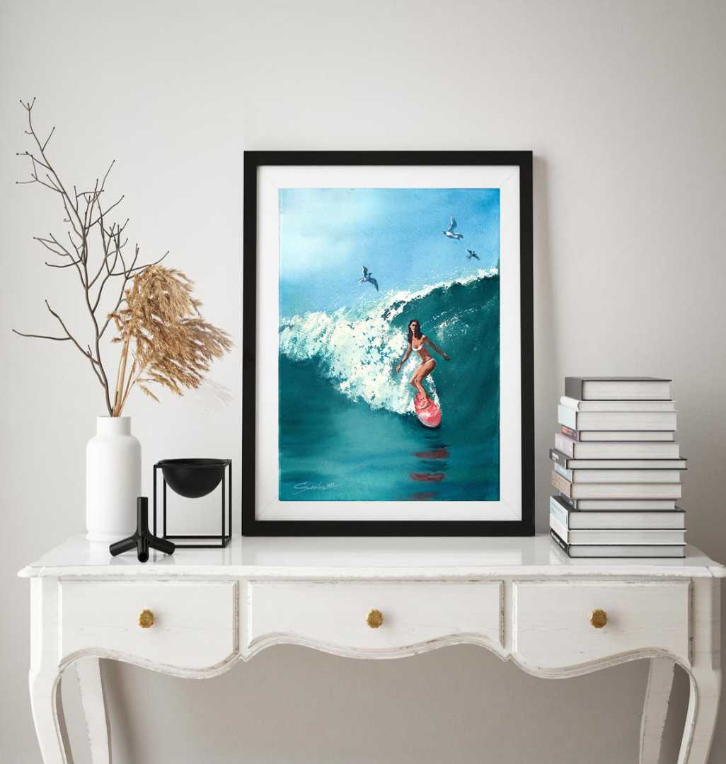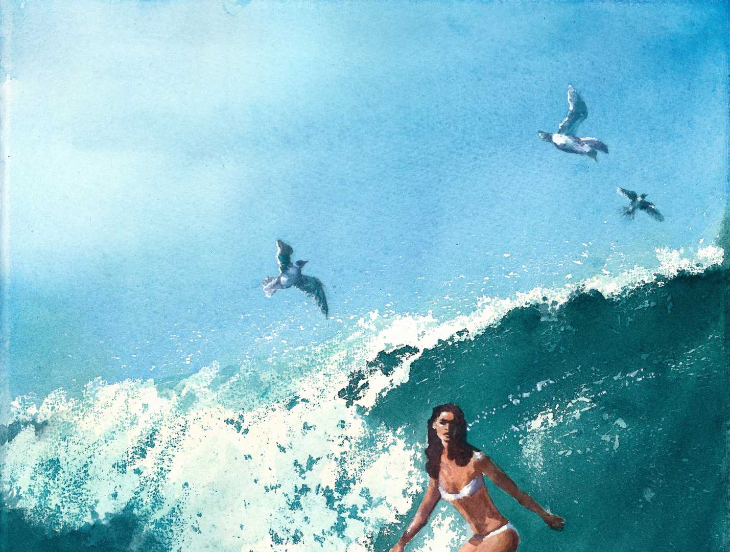 Этим летом в моем городе стояла сумасшедшая жара. Я решила освежиться циклом работ о воде, брызгах и обязательно человеческой фигуре, чтобы образно ощутить прохладу. Сейчас я смотрю на картину и чувствую то, что хотела передать!