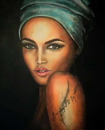Портрет обнаженной натуры написан в смешанной технике акрилом и сухой пастелью на холсте. Девушка с татуировкой на плече.