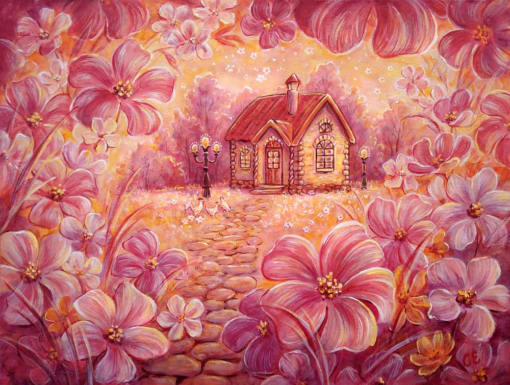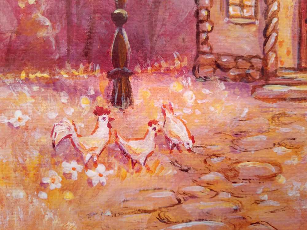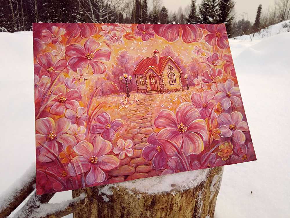 Картина написана акрилом на холсте, наклеенном на оргалит. Без рамы.