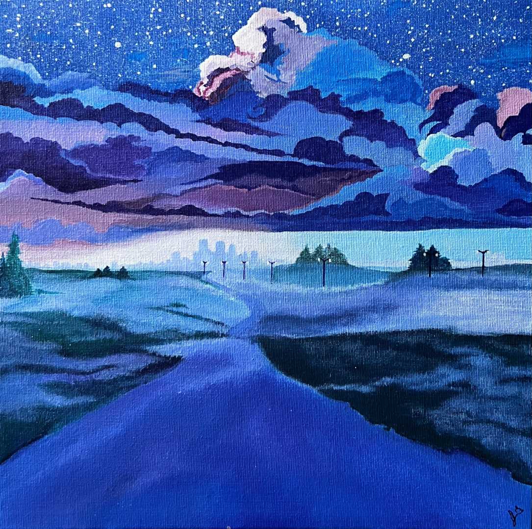 Картина "Дорога в город" написана акрилом на холсте с подрамником размером 30*30.