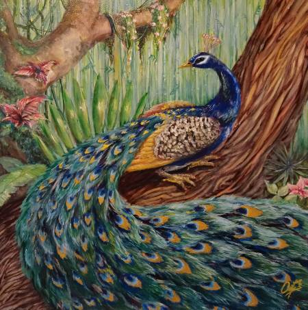 Эксклюзивная картина маслом с душой и любовью Павлин Тайны живой природы