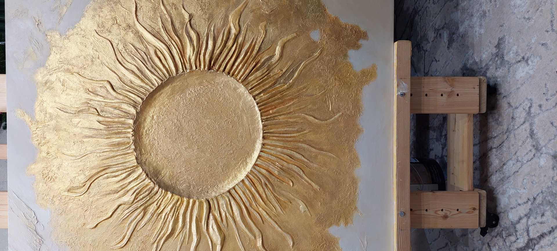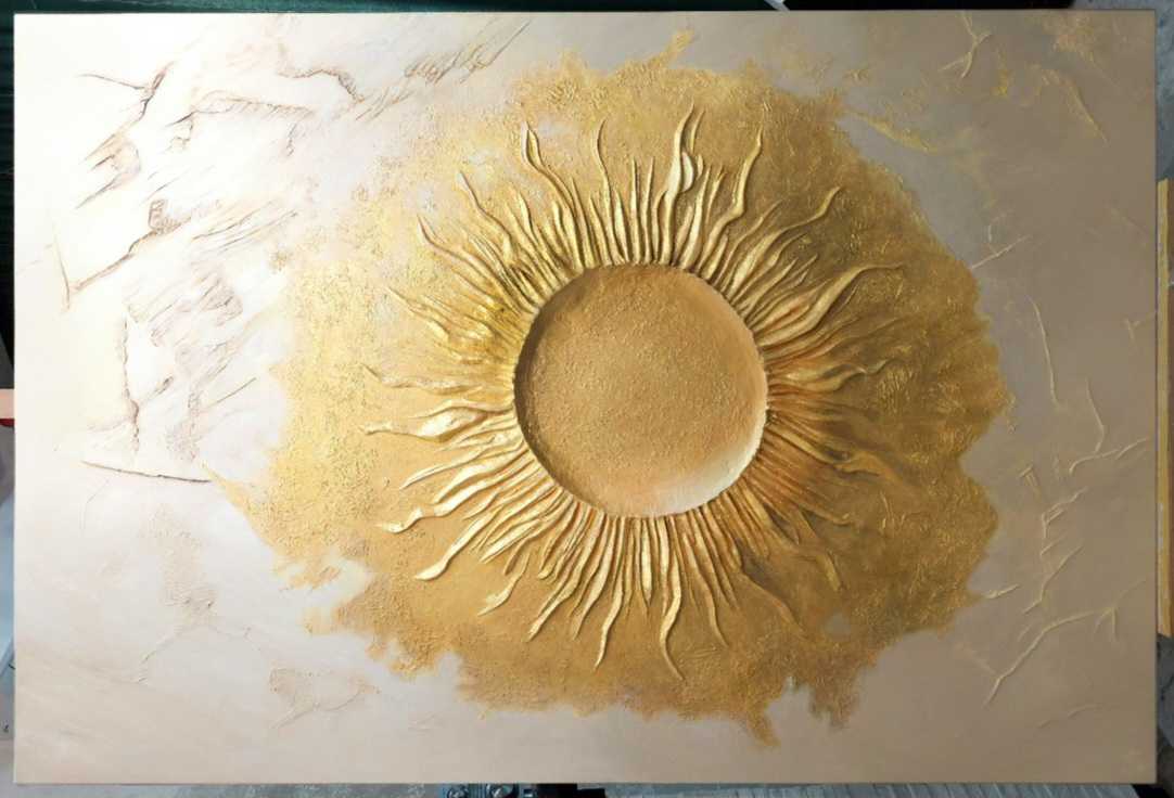 Эксклюзивная картина Золотое солнце Абстрактное искусство Детальная проработка