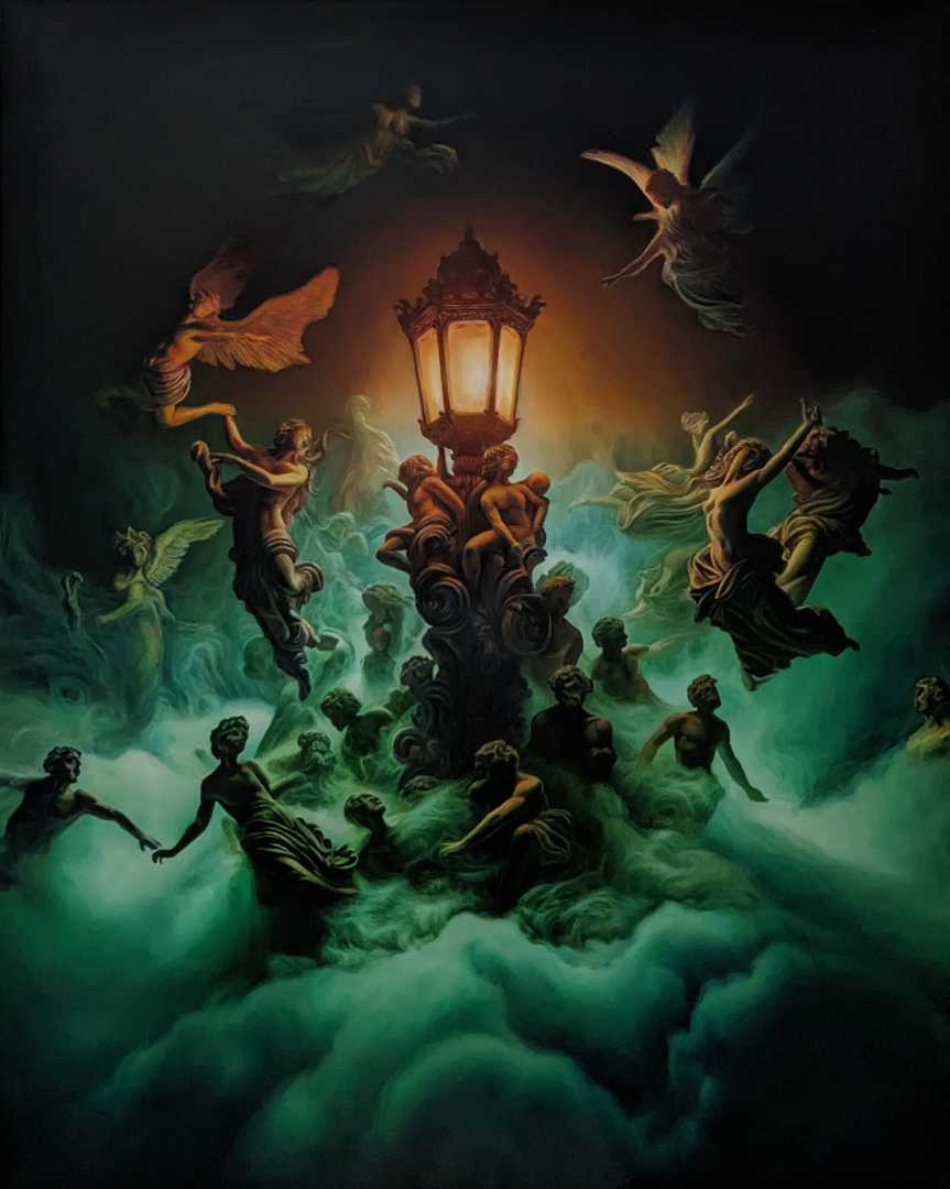 Ангелоподобные фигуры людей словно мотыльки вращаются вокруг объекта своих желаний, но обрести его в полной мере не способны, так же как и мотыльки не способны проникнуть внутрь лампы.