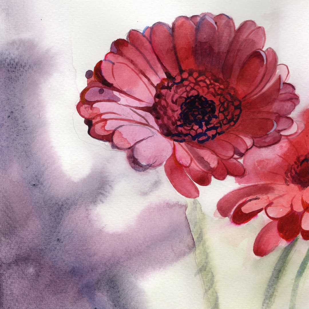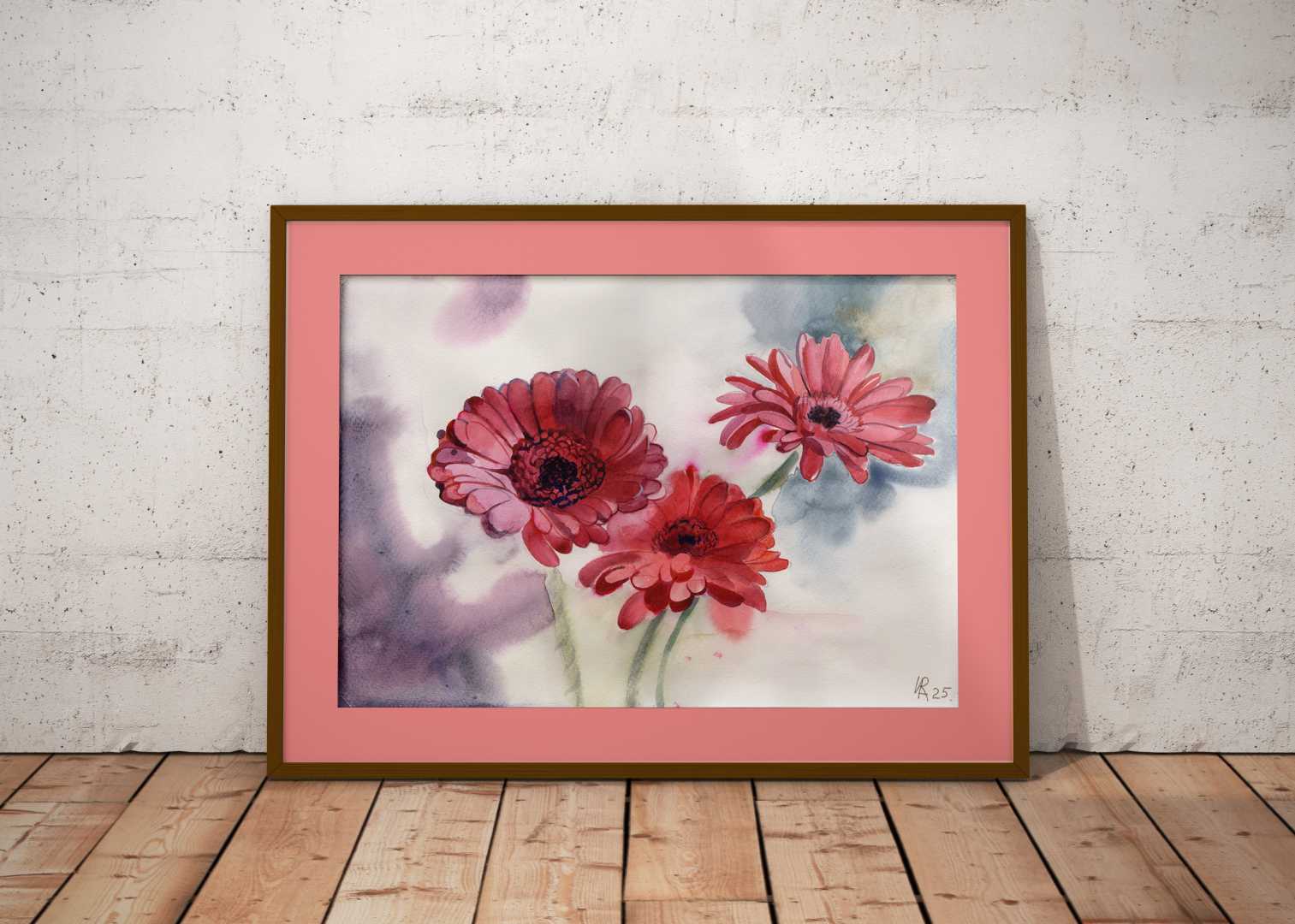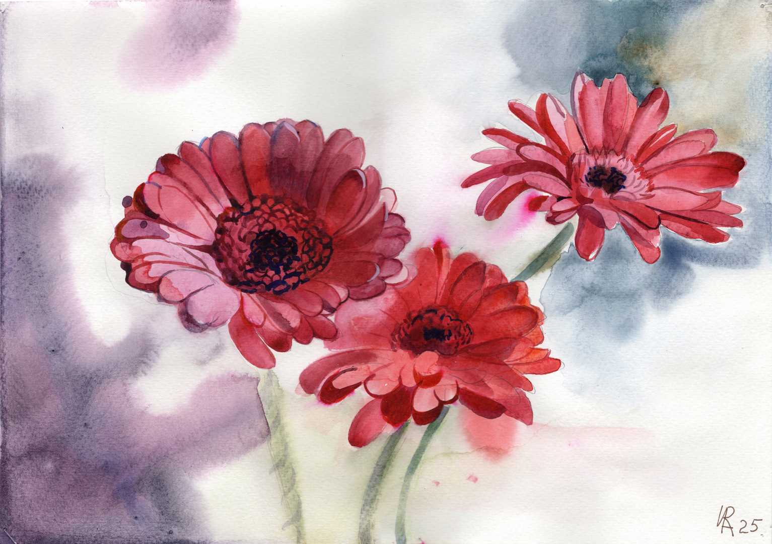 Акварельный этюд с герберами на бумаге А3. Работа не оформлена!