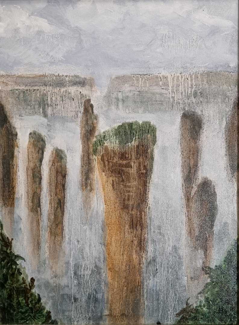 Горы Аватара (национальный парк Чжанцзяцзе, Китай). Они вдохновили меня вернуться в эту страну. Но ... 270 дней в году там идут дожди, остальное время облачно и очень редко солнцу. Совсем не как в фильме Камерона. Итог - вся работа выполнена в технике лессировка, чтобы передать ощущения дожд