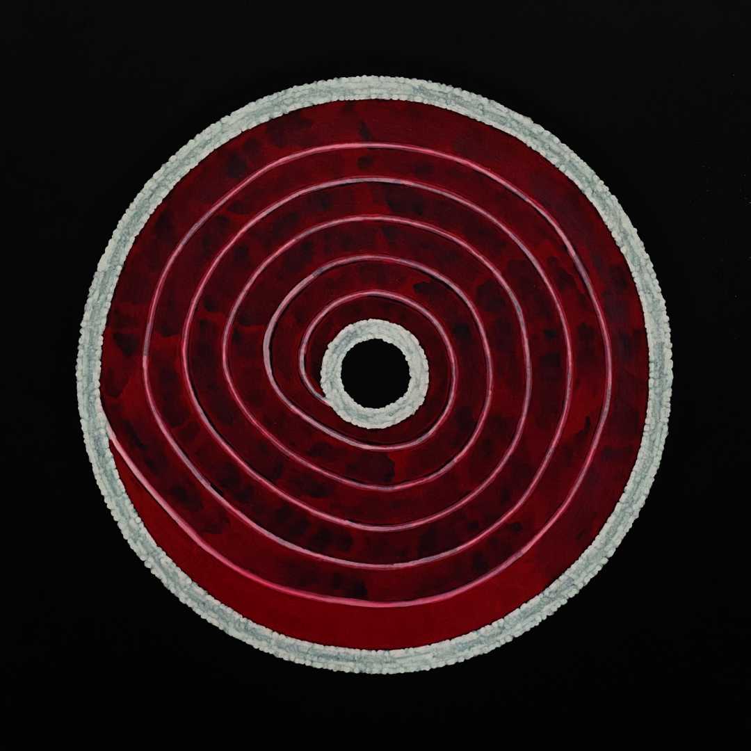 ”Infusion” - три динамичных красно-белых паттерна на черном фоне. Техника легкой, слегка небрежной заливки создает гипнотический визуальный эффект и передает пульсирующую энергию даб-техно.