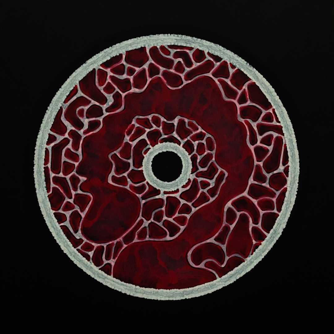 ”Infusion” - три динамичных красно-белых паттерна на черном фоне. Техника легкой, слегка небрежной заливки создает гипнотический визуальный эффект и передает пульсирующую энергию даб-техно.