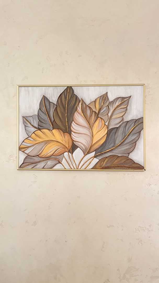 Обьемная картина с добавлением текстурной пасты и золотой потали