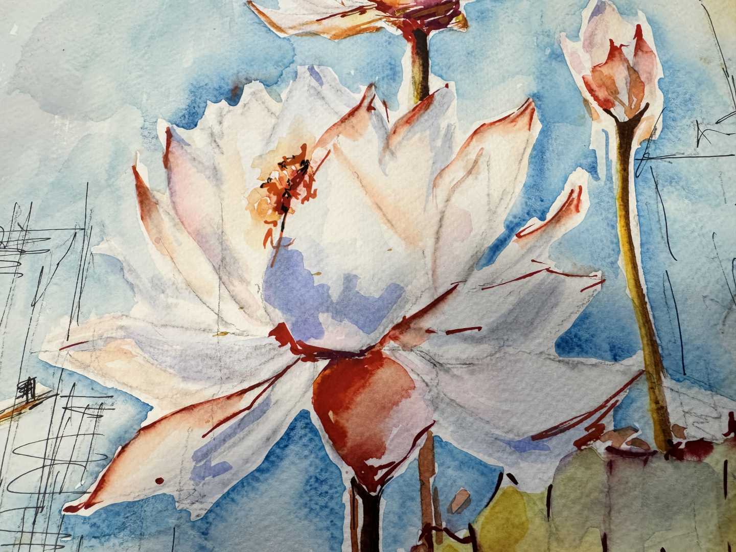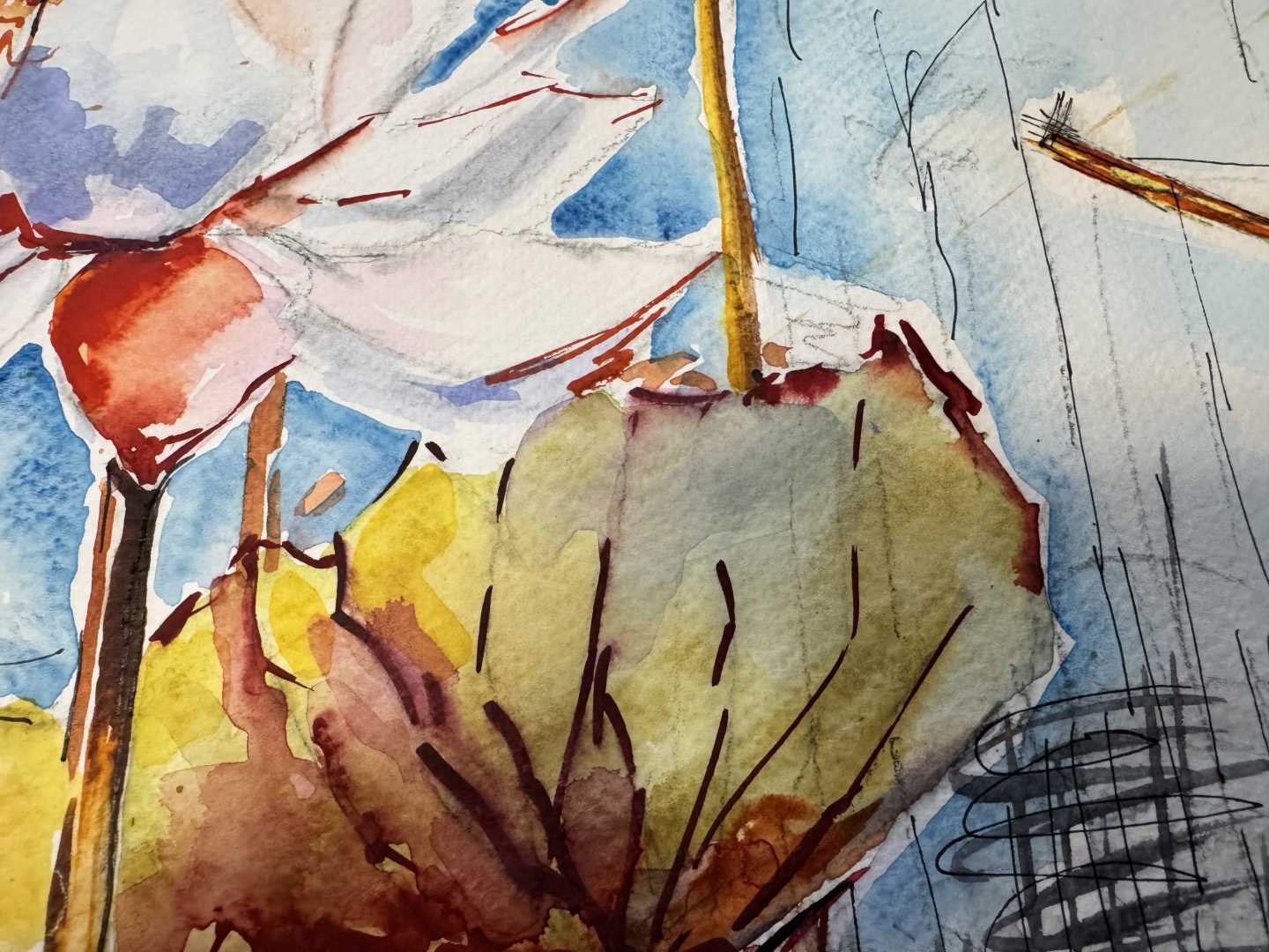 Акварель. Смешанная техника: чернила, карандаш, ручка, пастель.