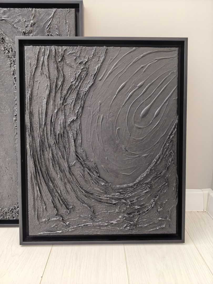 Текстура в этой картине — ключевой элемент работы. Поверхность картины объёмная, с чётко выраженными бороздами и выступами. Такая фактурность делает картину не только визуальным, но и тактильным объектом — возникает желание прикоснуться, чтобы прочувствовать рельеф. Рельеф в данной композиции выполн