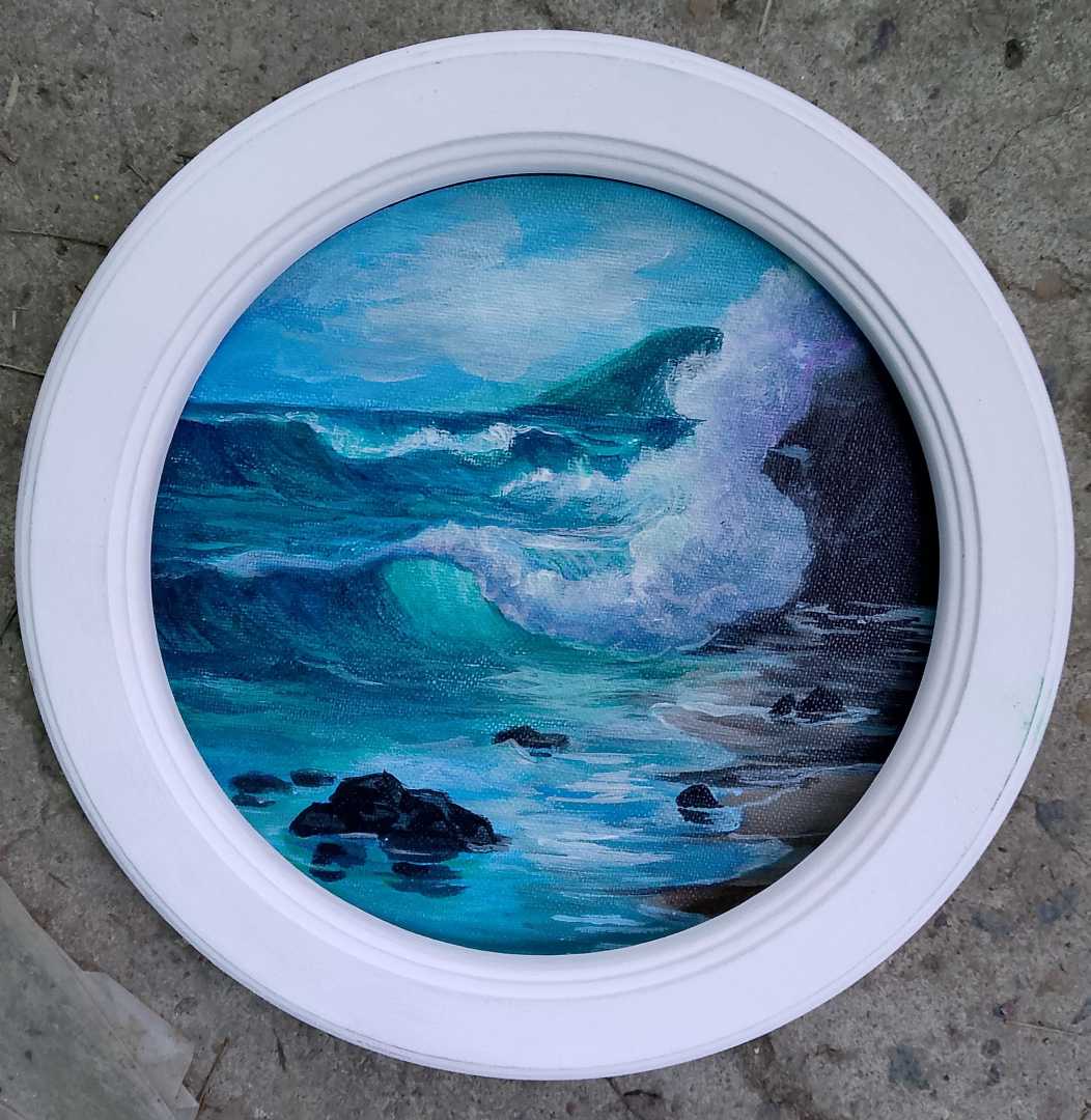 Картина круглая с рамой. Холст на картоне. Покрыта лаком.