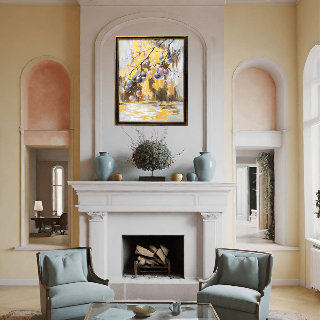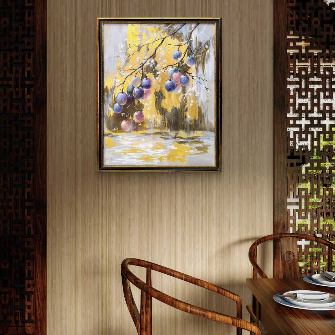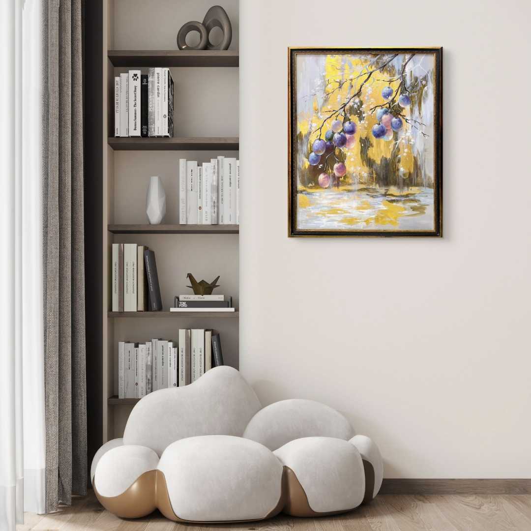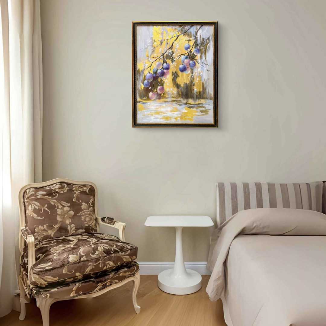 Лиловый дождь - тонкий, почти медитативный сюжет, где изящные линии ветвей сочетаются с почти прозрачными от сладости гроздьями слив. Это песня изобилия и спокойного отдыха в кругу самых близких и родных людей, где всегда тепло и уютно.