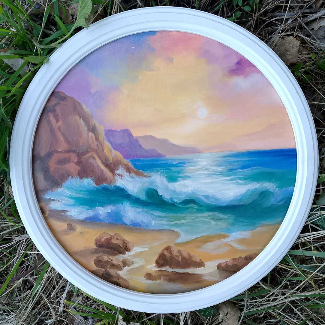 Картина круглая с рамой. Холст на картоне. Покрыта лаком.