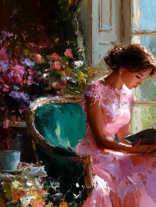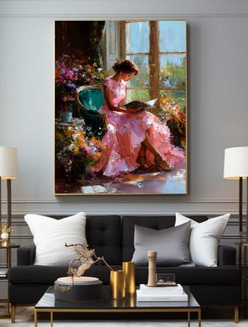 яет комнату мягким солнечным светом, создавая иллюзию тепла и спокойствия. Тонкие мазки и богатая палитра передают каждый штрих — от нежных складок платья до атмосферного освещения. Мои картины отличаются особенной глубиной, тонкостью исполнения и использованием только лучшего премиального материала, что обеспечивает исключительное качество и долговечность.