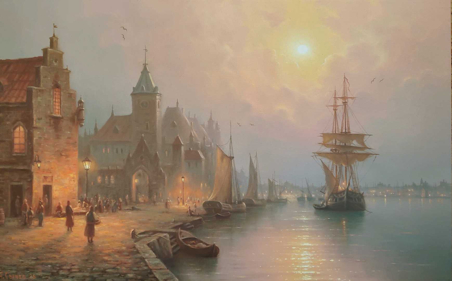 Картина с морем и старинной архитектурой станет выразительным акцентом в гостиной, кабинете или классическом интерьере. Пейзаж с парусниками наполняет пространство ощущением покоя, путешествий и романтики морских горизонтов.