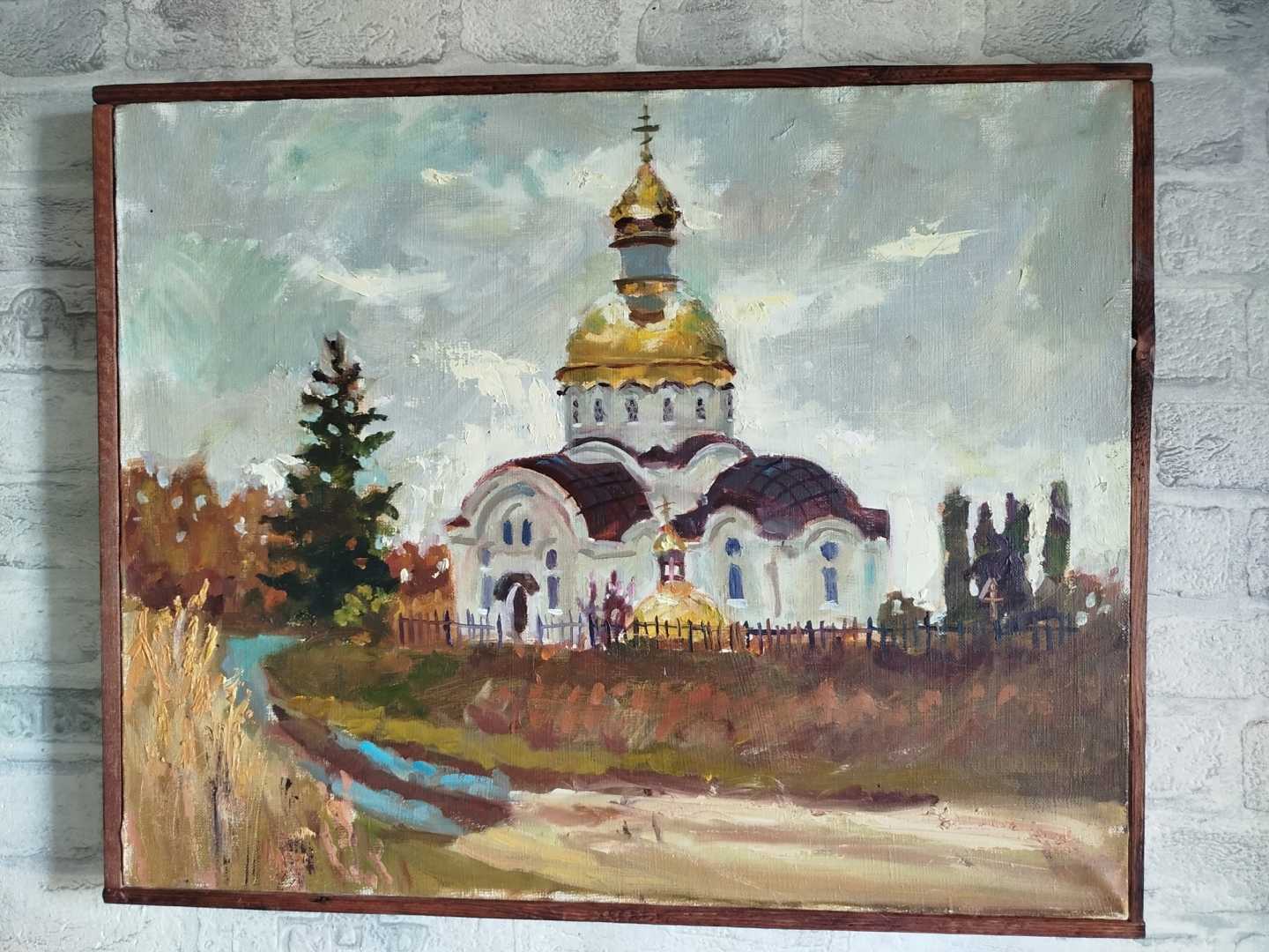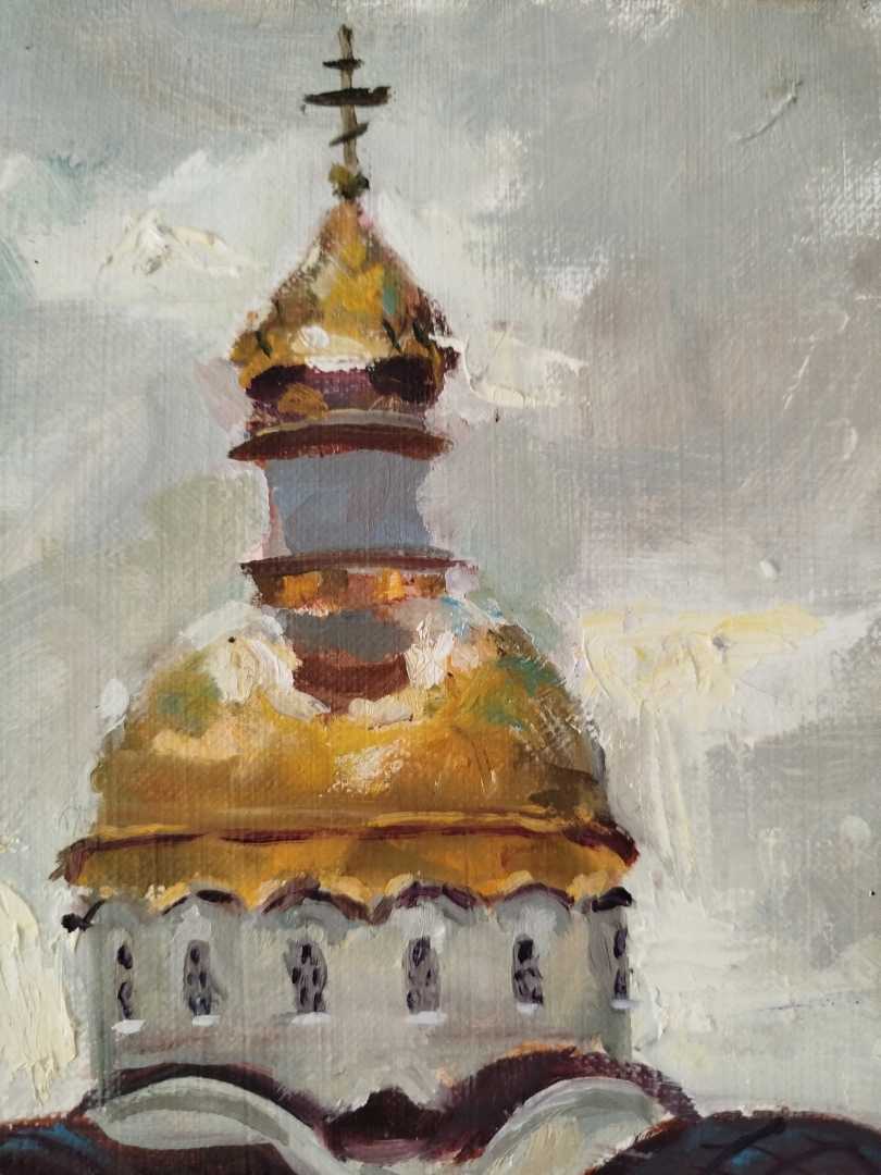 Картина Храм Иоанна Оленевского. Холст (лён) на подрамнике без рамы, оформлен рейкой, размером 40*50, масло.