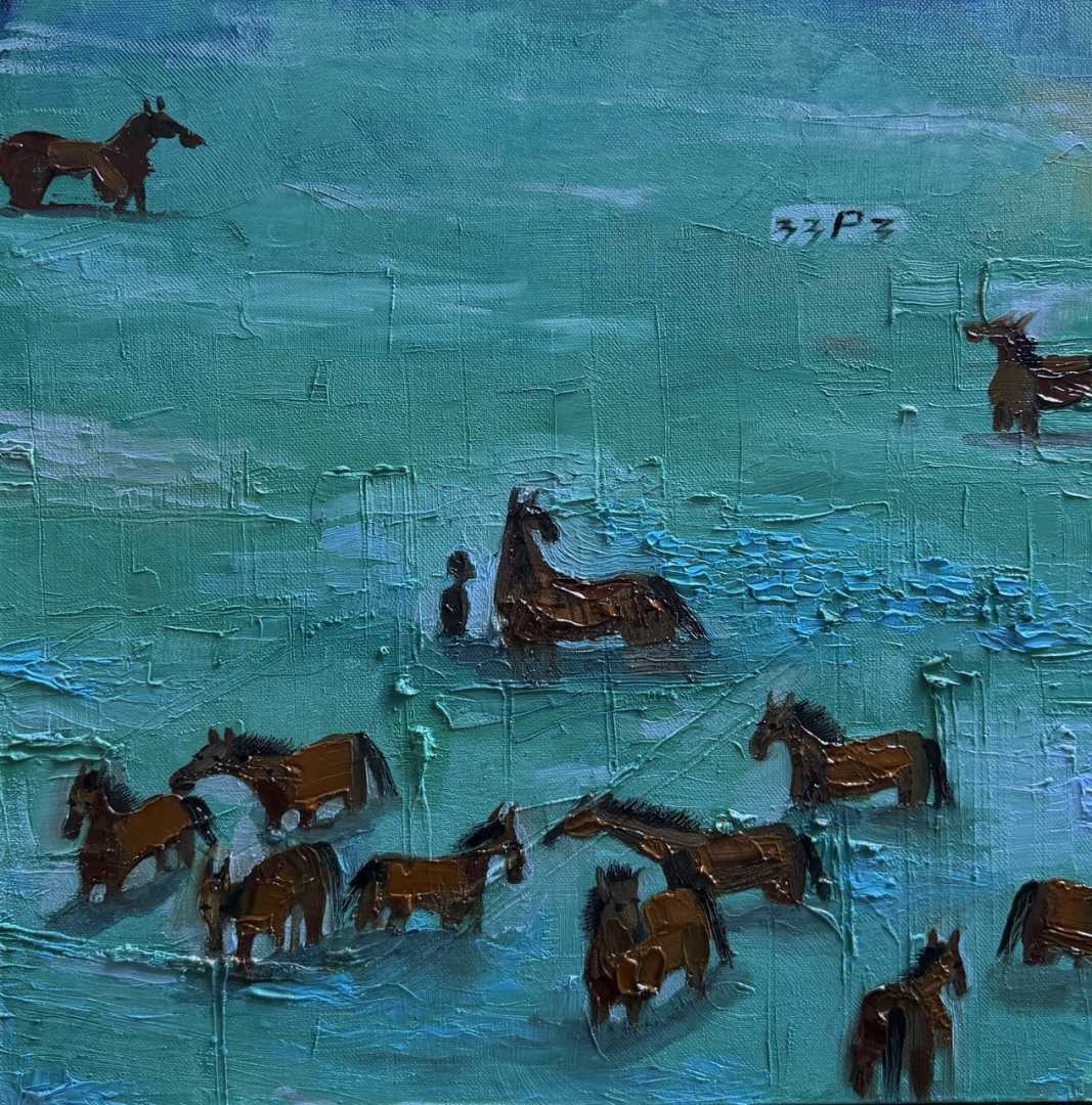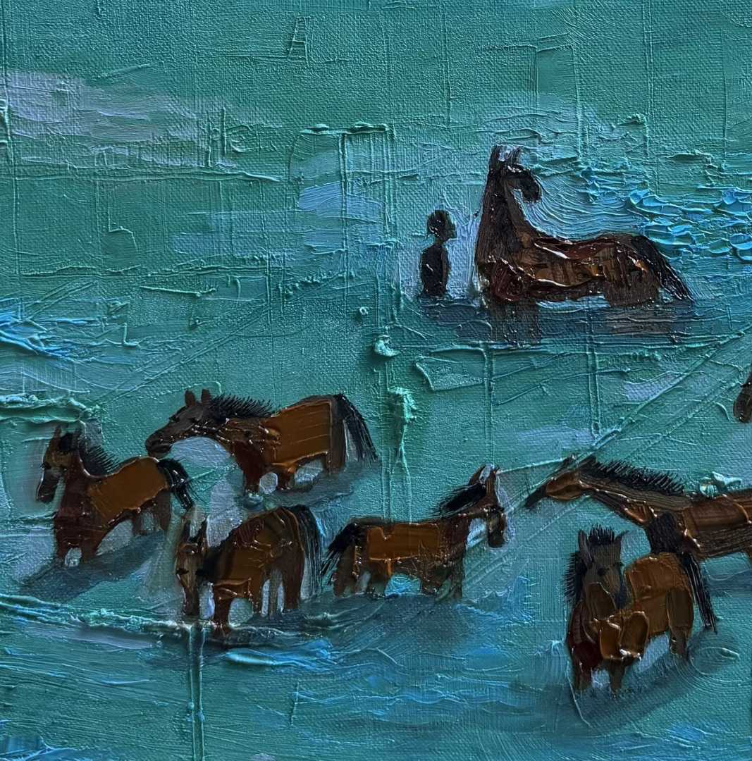 Лошади с воде, бирюзовая вода