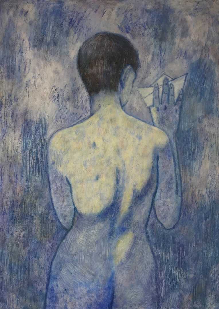 Спрятанный от лишних глаз мальчик, в самом сокровенном и тихом уголке, хранит в сердце надежду и держит, еле касаясь, свою хрупкую и нежную, детскую мечту. Холст, акрил