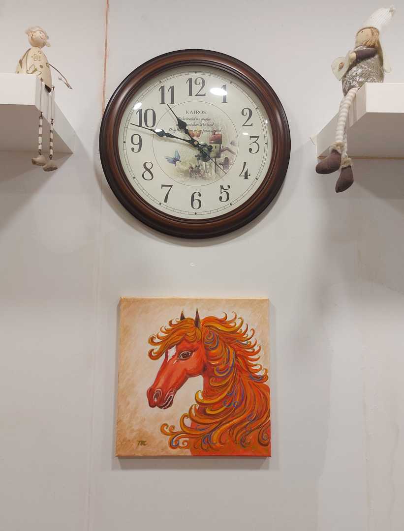 На картине изображен красный конь с золотистой гривой. 2026 год. Холст, акрил.